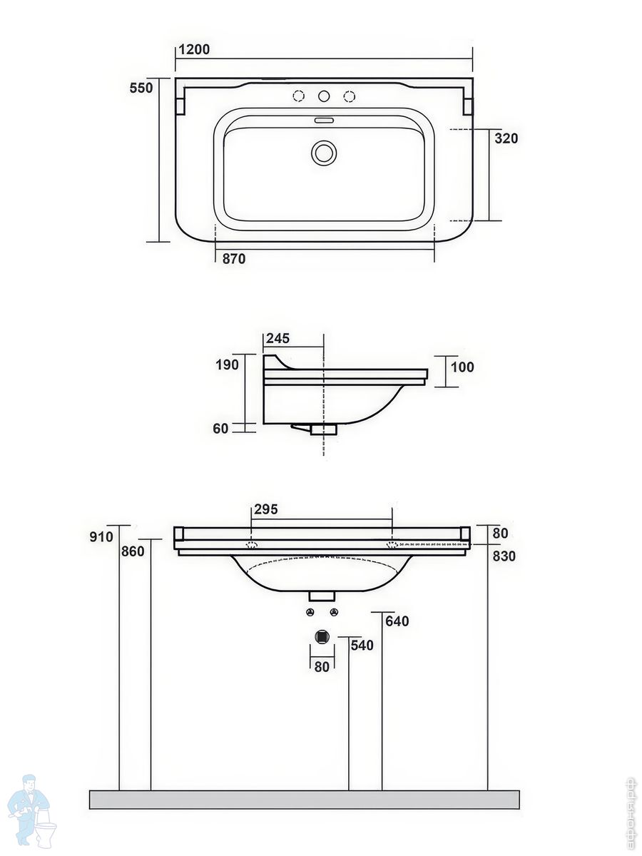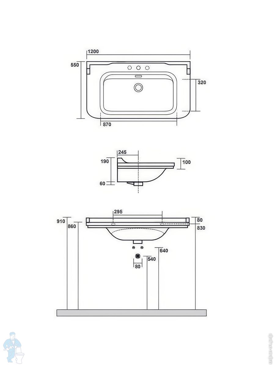 Раковина подвесная Kerasan Waldorf 4144K1bi/cr*3 1200х550 керамическая,3отв.под смеситель,белый/хромКод: 255759