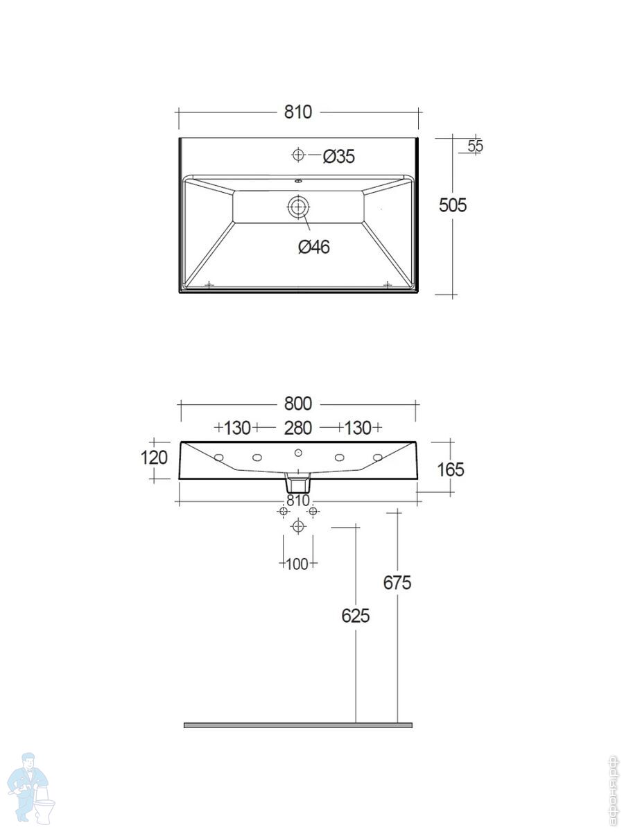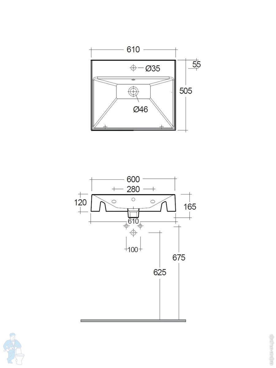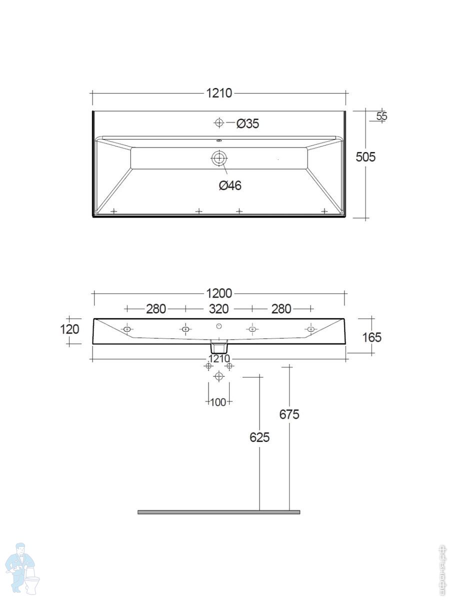 Раковина подвесная KLUDI RESA 1210х500х120 прямоуг, с отв под смесит, д/к,светло-серый мат 59WW121O2Код: 347680