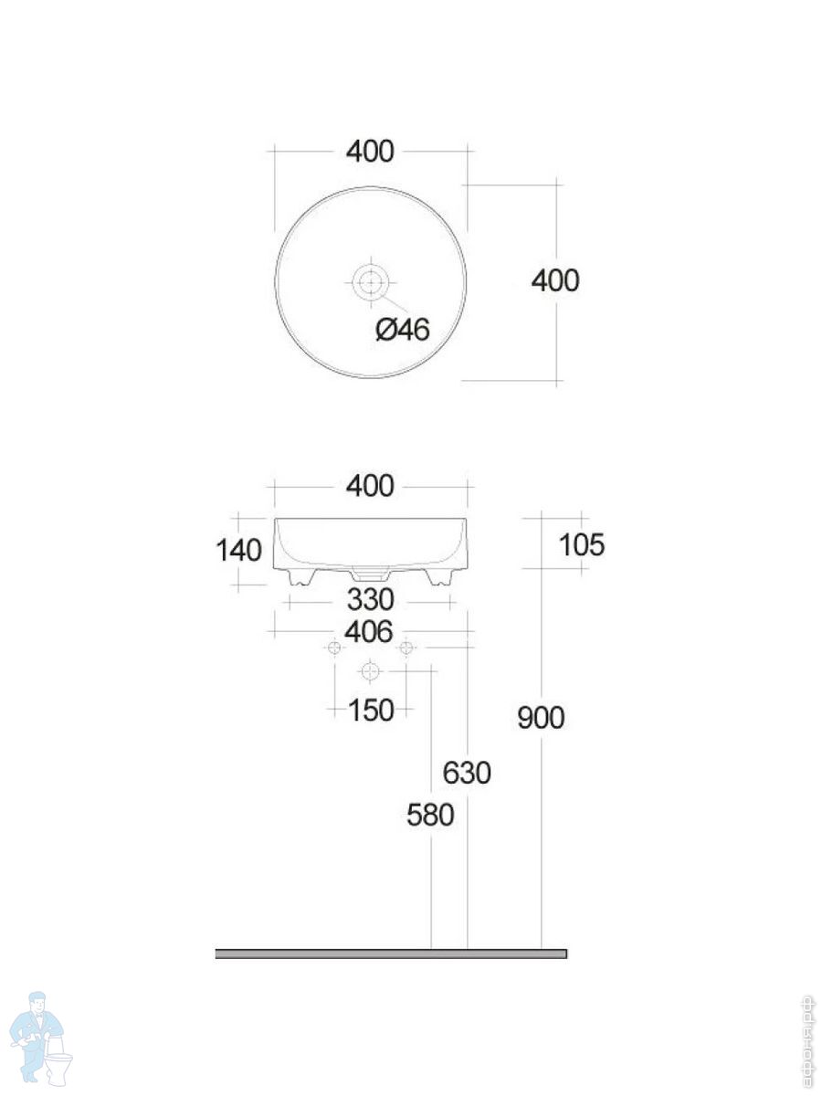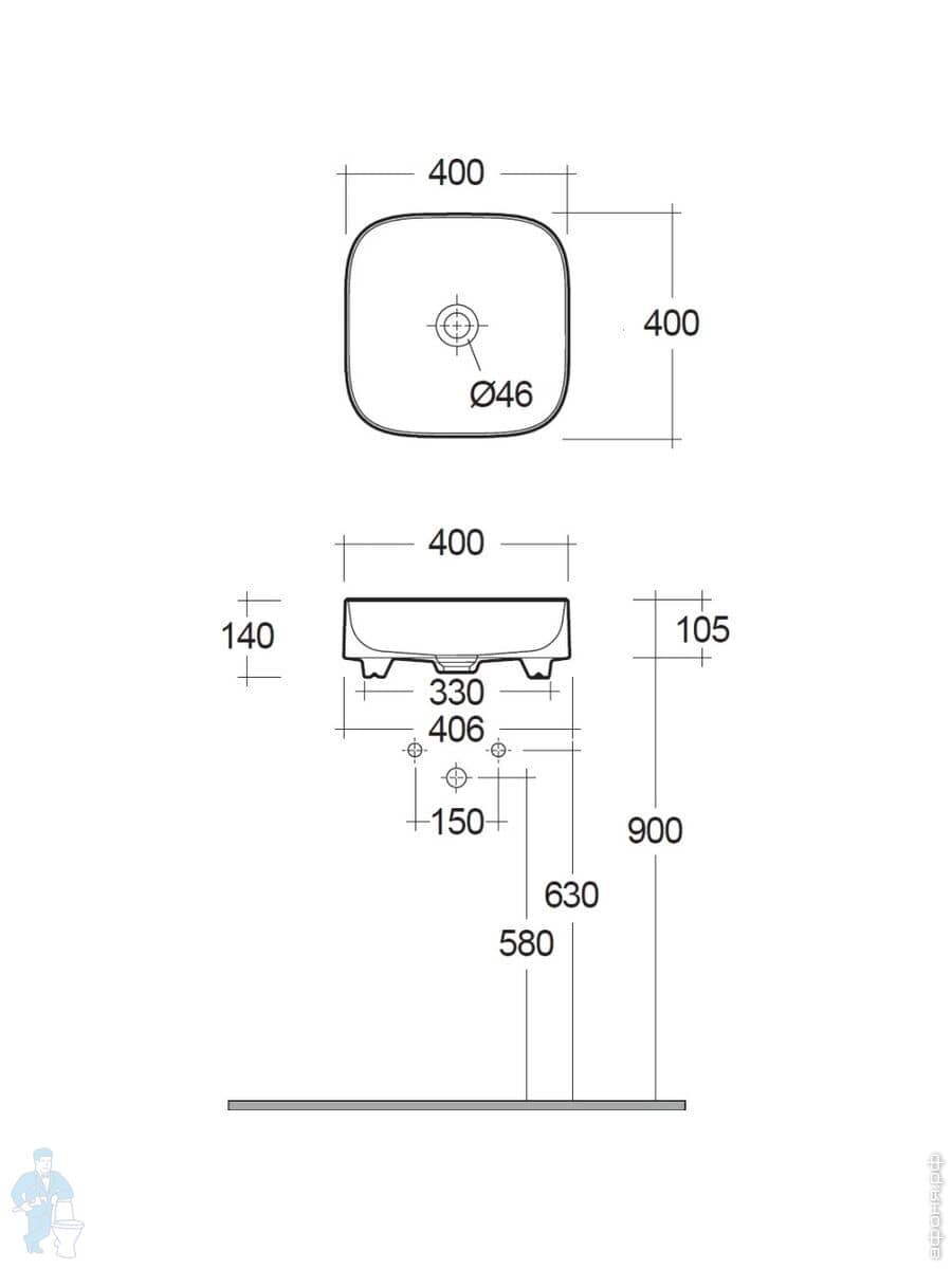 Раковина накладная KLUDI RESA C 400х400х140 квадратная, без отв под смесит, д/к, белый мат. 58CW3053Код: 347662