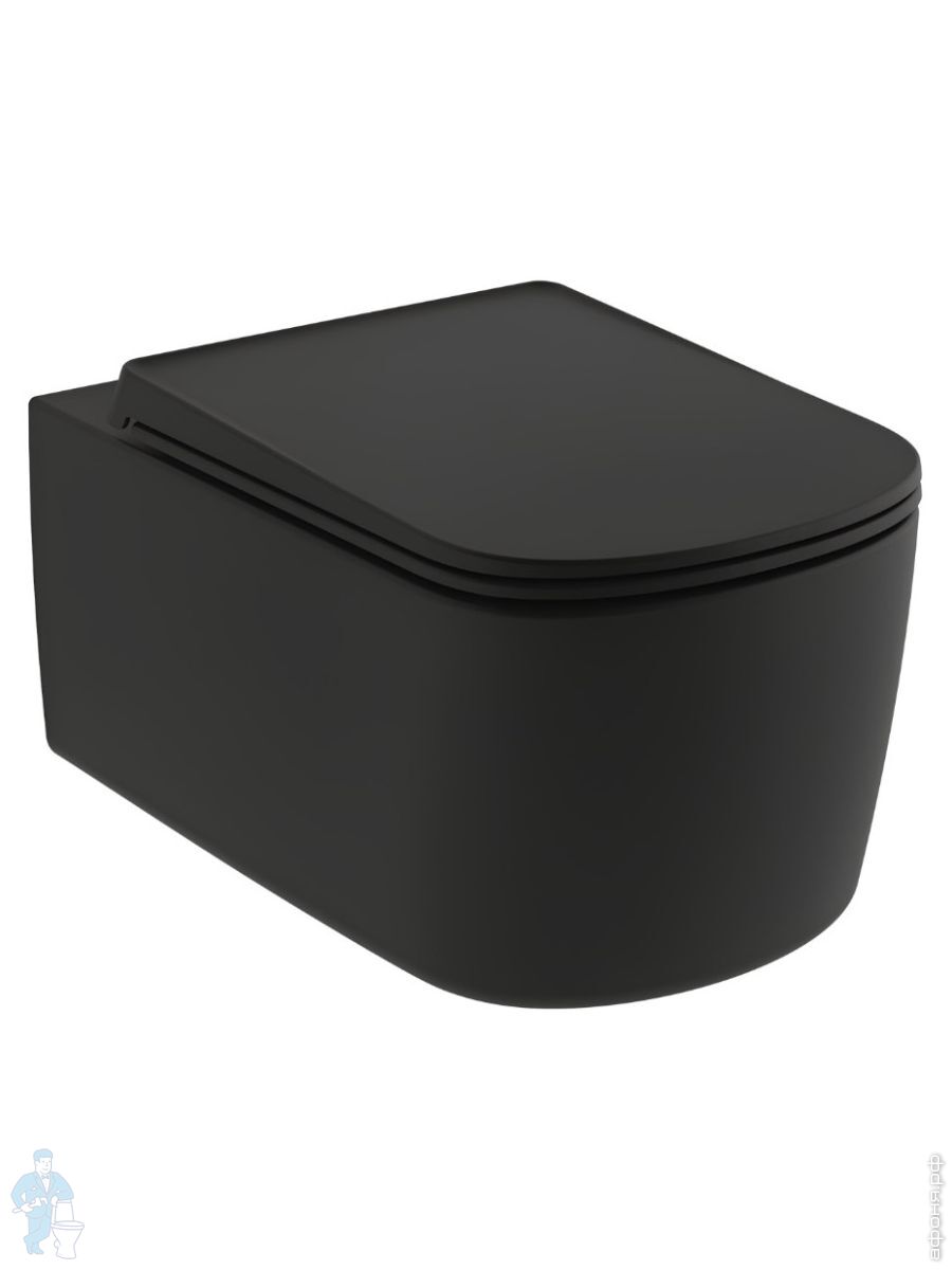 Унитаз подвесной KLUDI RESA S 550х360х260 безободковый, Spiralf,с сиденьем, черный матовый 27WCSET39Код: 347643