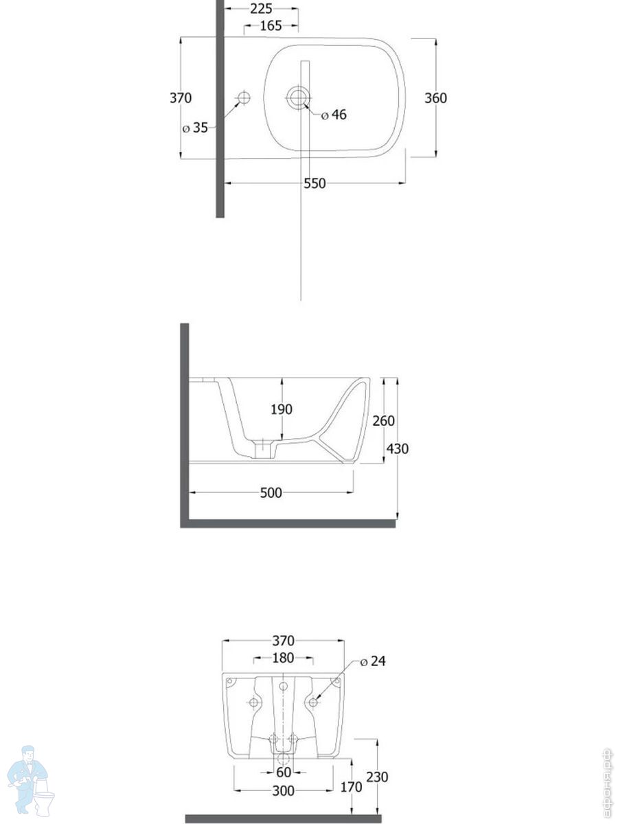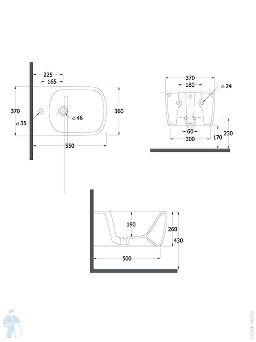 Биде подвесное KLUDI RESA S 550х360х260 без смесителя для биде, без донного клапана, белый 27BIW0143Код: 347648