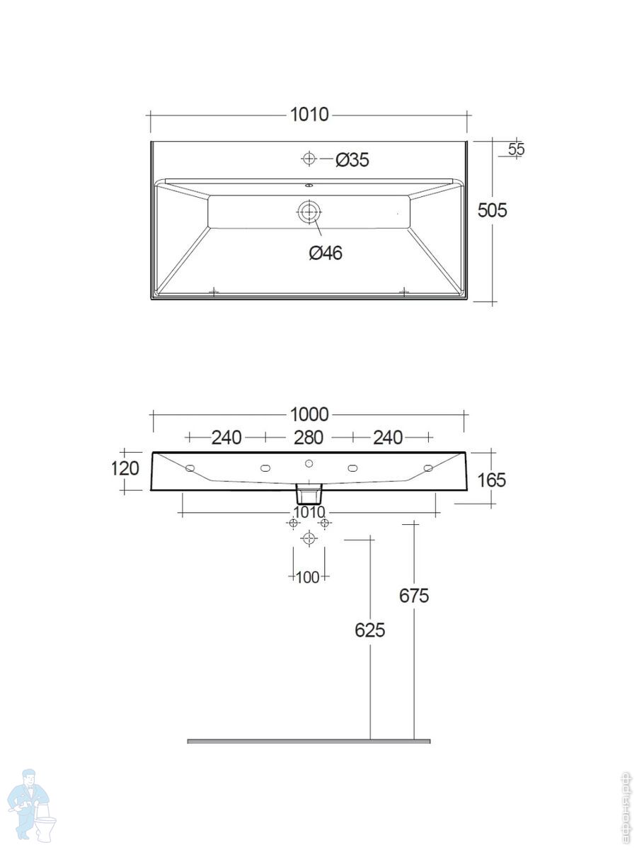 Раковина подвесная KLUDI RESA 1010х500х120 прямоуг, с отв под смесит, д/к,светло-серый мат 59WW101O2Код: 347679