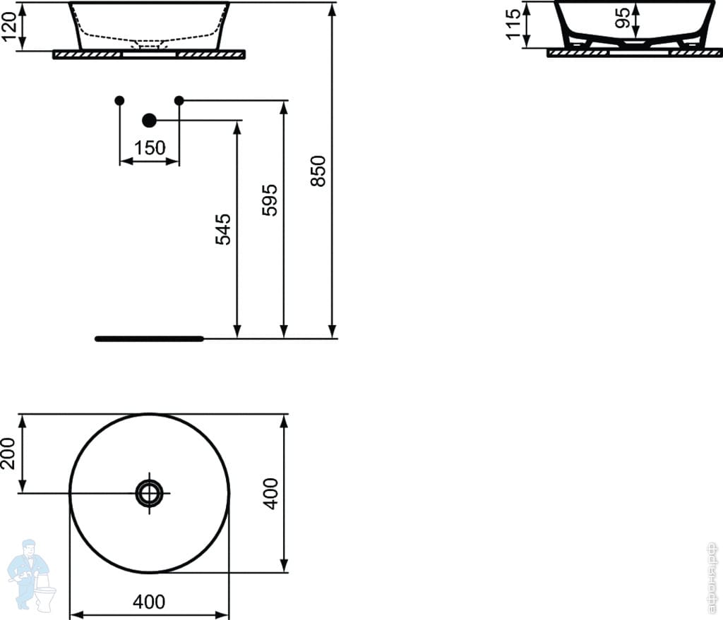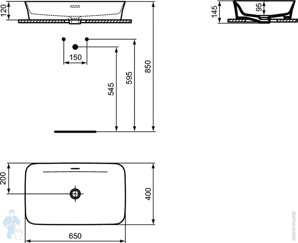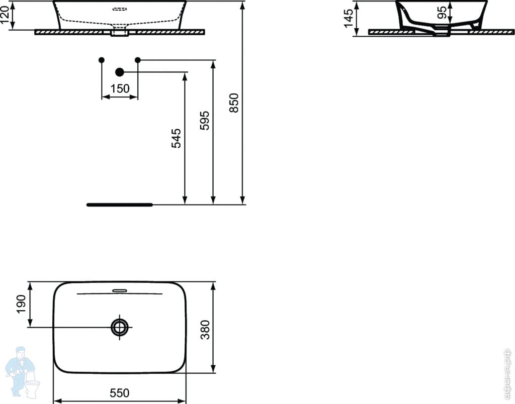 Умывальник IPALYSS Ideal Standard (550х380х145) отвер под смеситель, перелив, черный матовый E2077V3Код: 184122