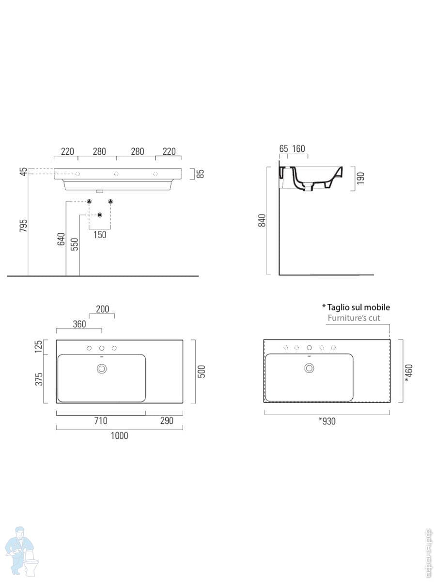 Раковина накладная/подвесная GSI Nubes 1000х500 чаша слева, перелив, отв.под смеситель,белая 9627111Код: 365878
