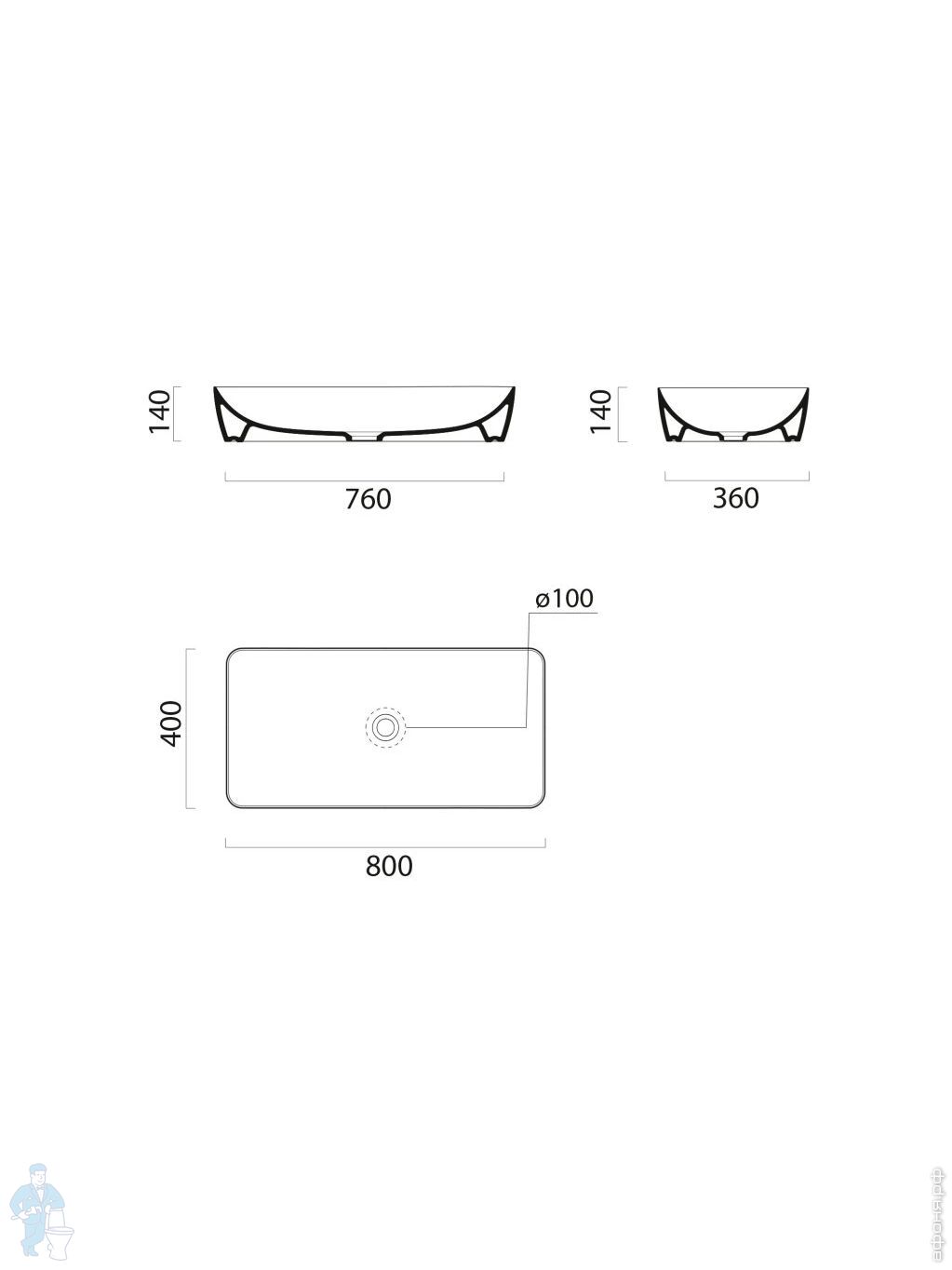 Раковина накладная GSI Nubes 800х400х140 без перелива, без отв. под смеситель, Ghiaccio Matte 904015Код: 328607
