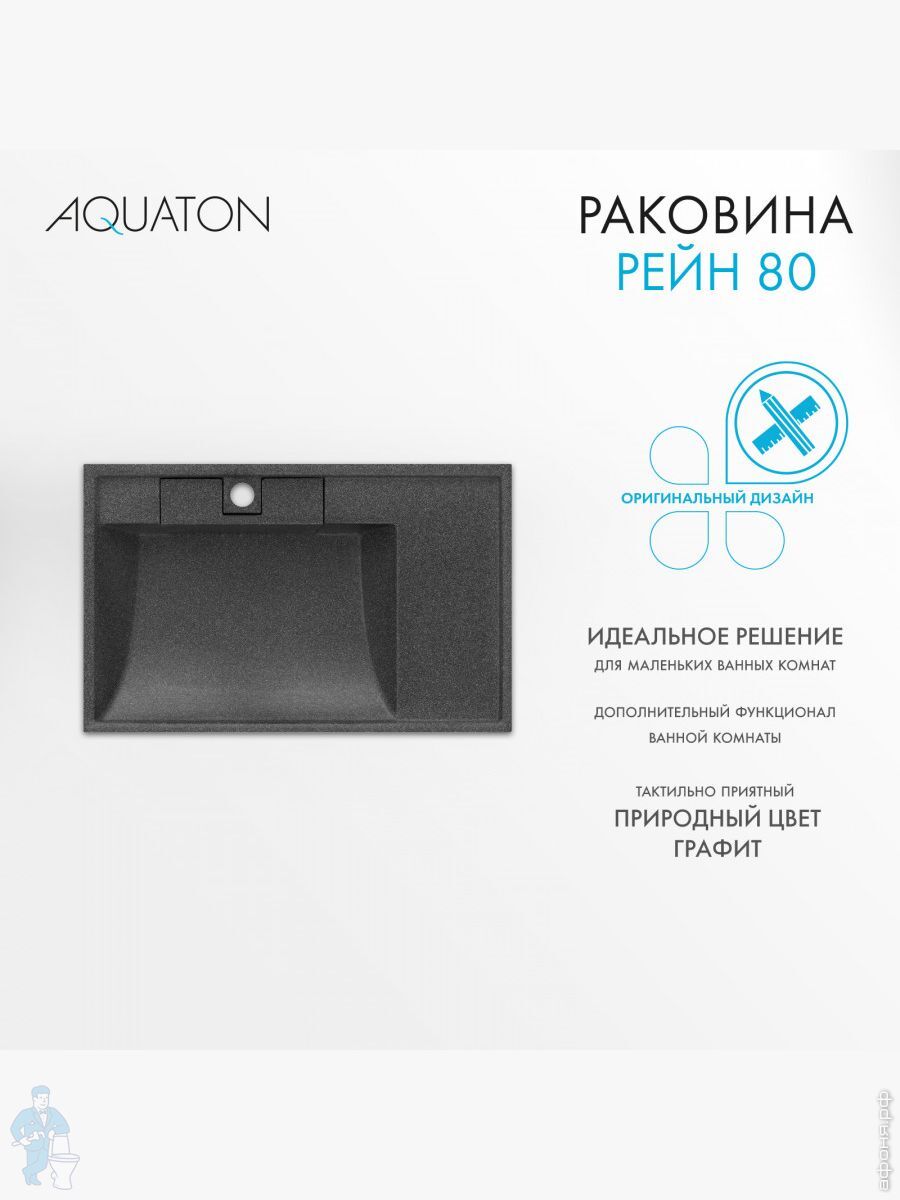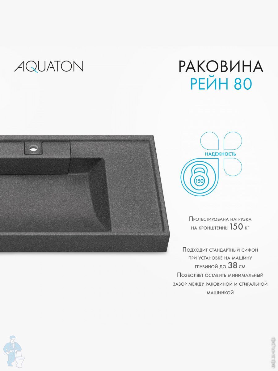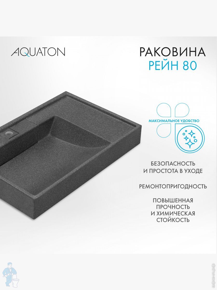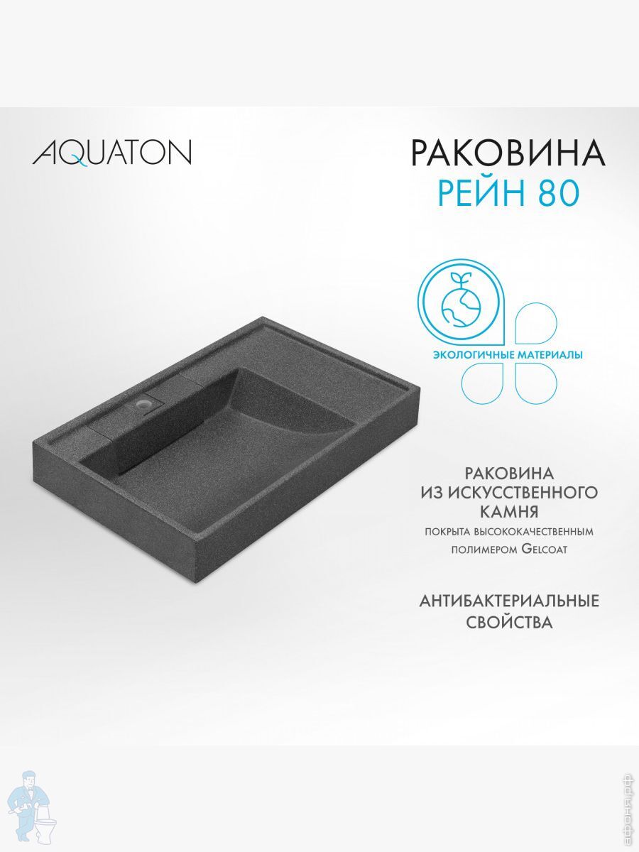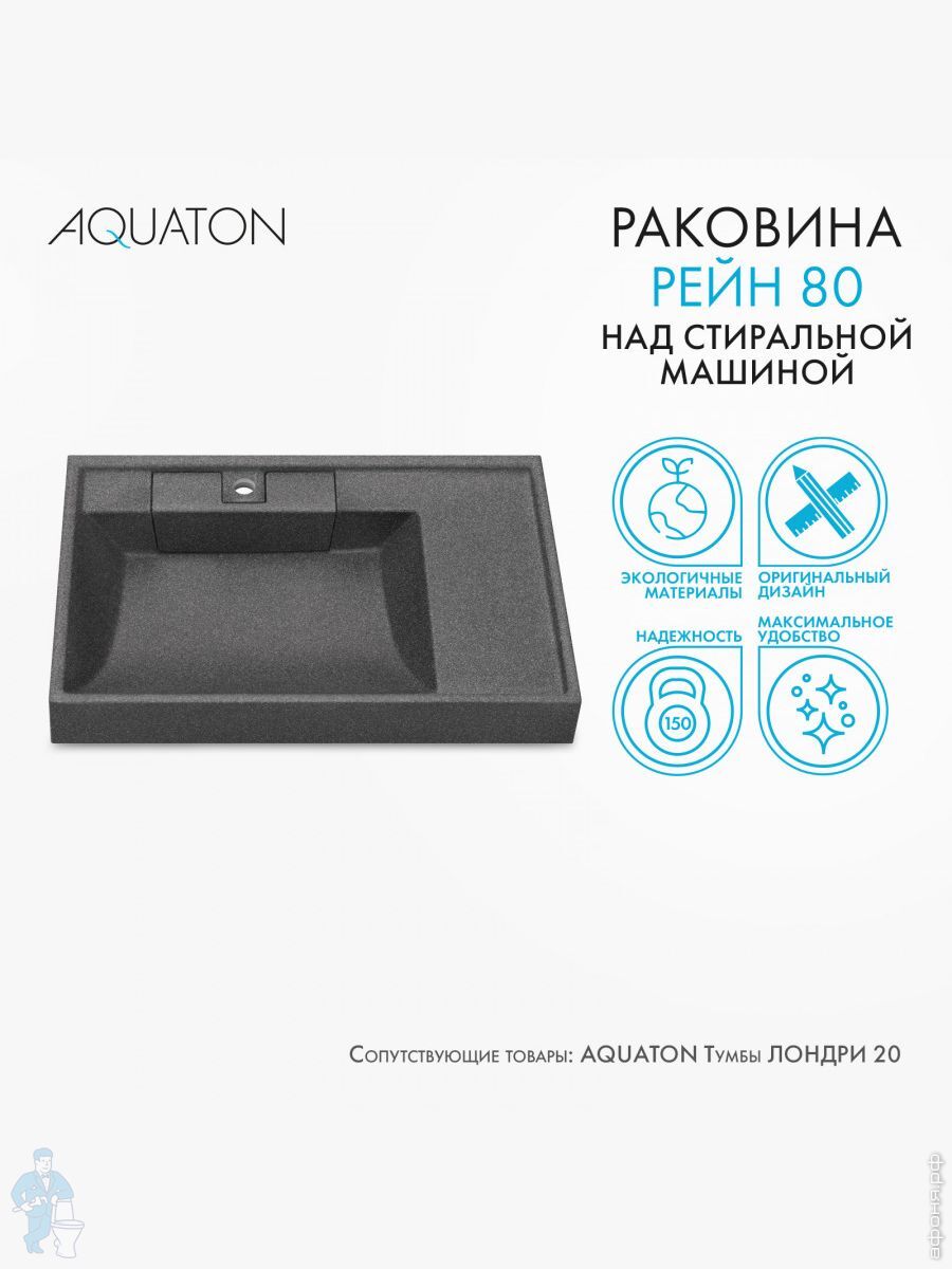 Раковина Aquaton Рейн 80 1A72113KRW210 800x500x138мм из литого мрамора для стиральной машины, графитКод: 290069