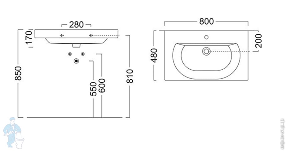 Уценка! Раковина Vitra S20 450х450х170 встраиваемая, с отверстием под смеситель, белая 5463B003-0001Код: 72677У