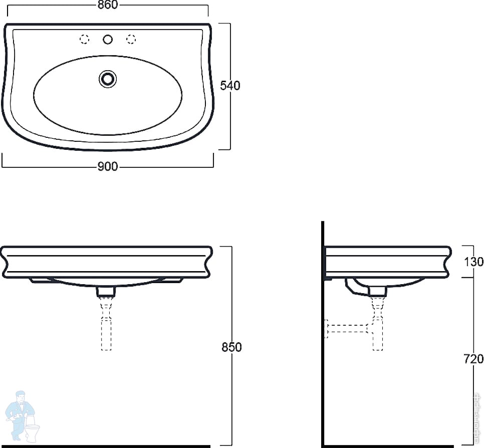 Раковина подвесная/накладная Simas LANTE (900х540х130) с 3 отверстиями под смеситель, белая LA11bi*3Код: 170163