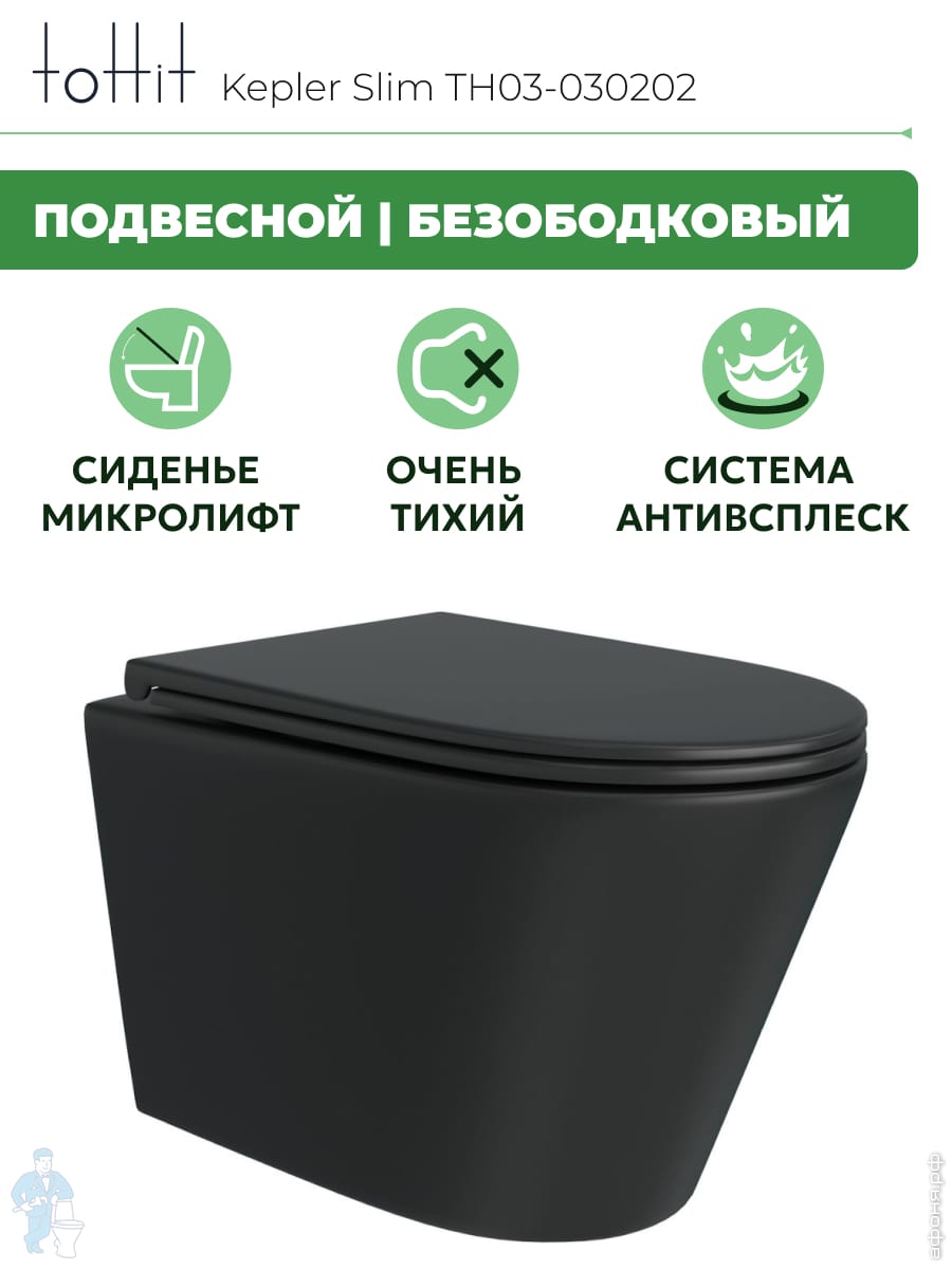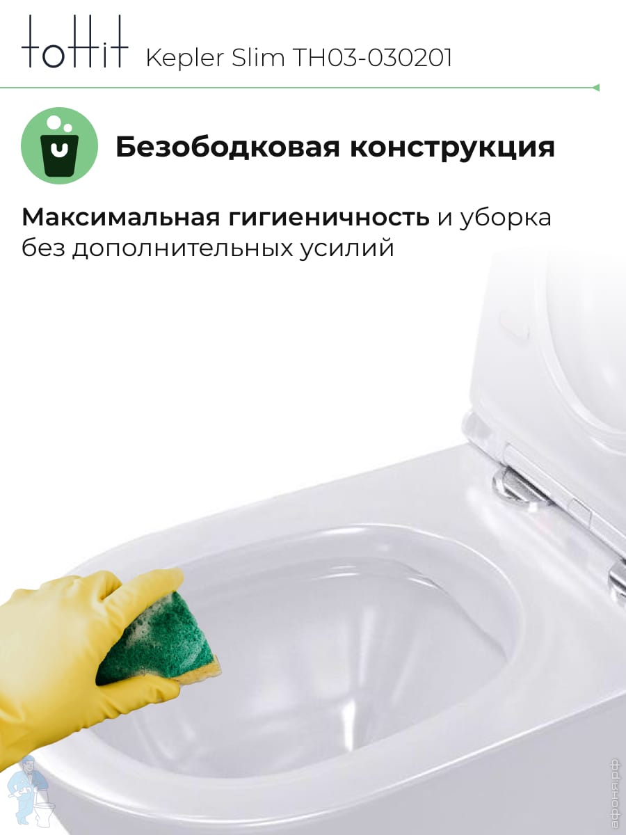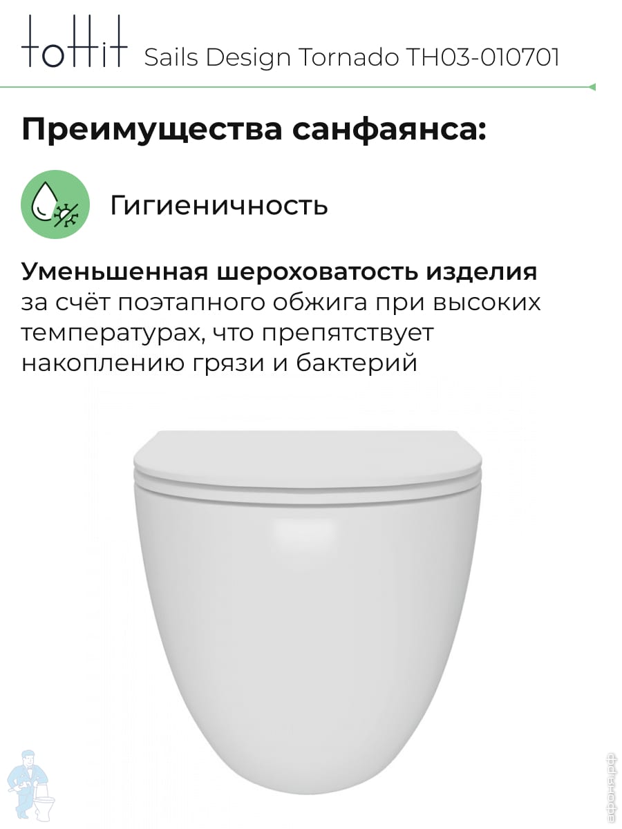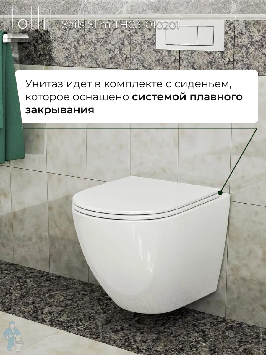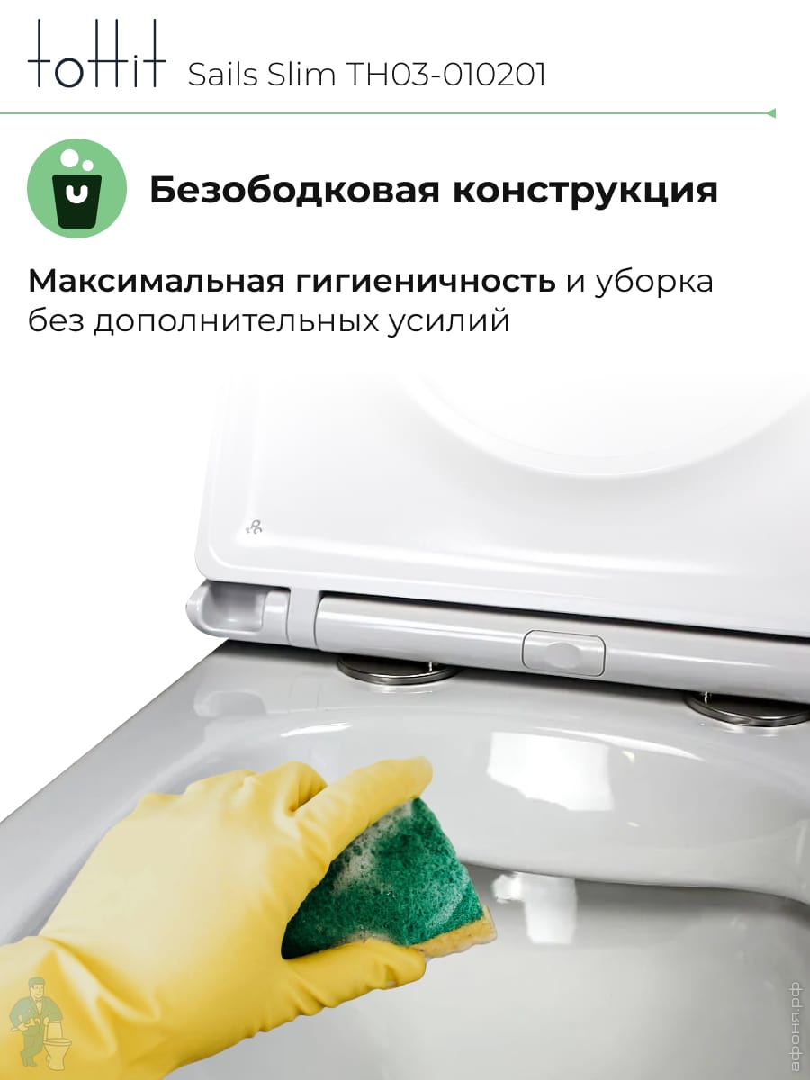 Унитаз подвесной toHit, бесшумный, безободковый, сиденье с микролифтом, белый, 525х345х360, TP092303Код: 213447