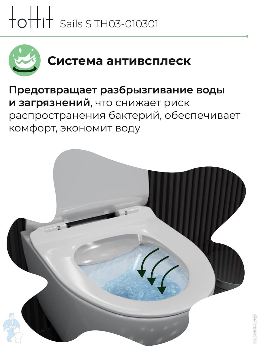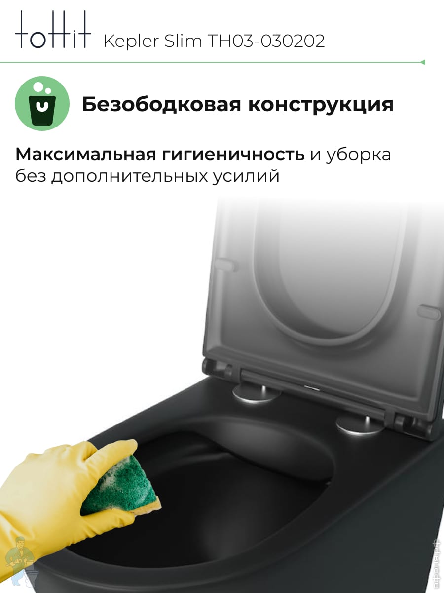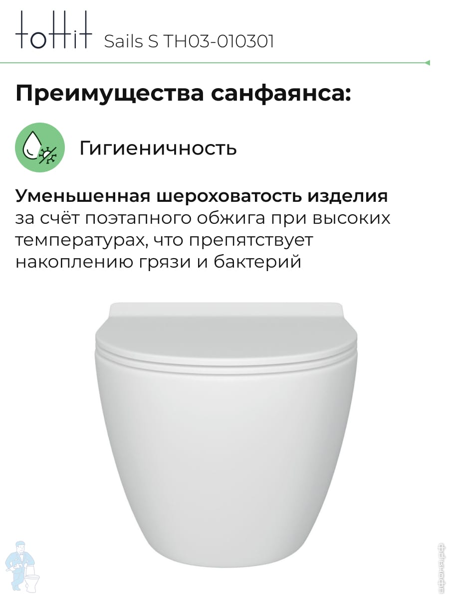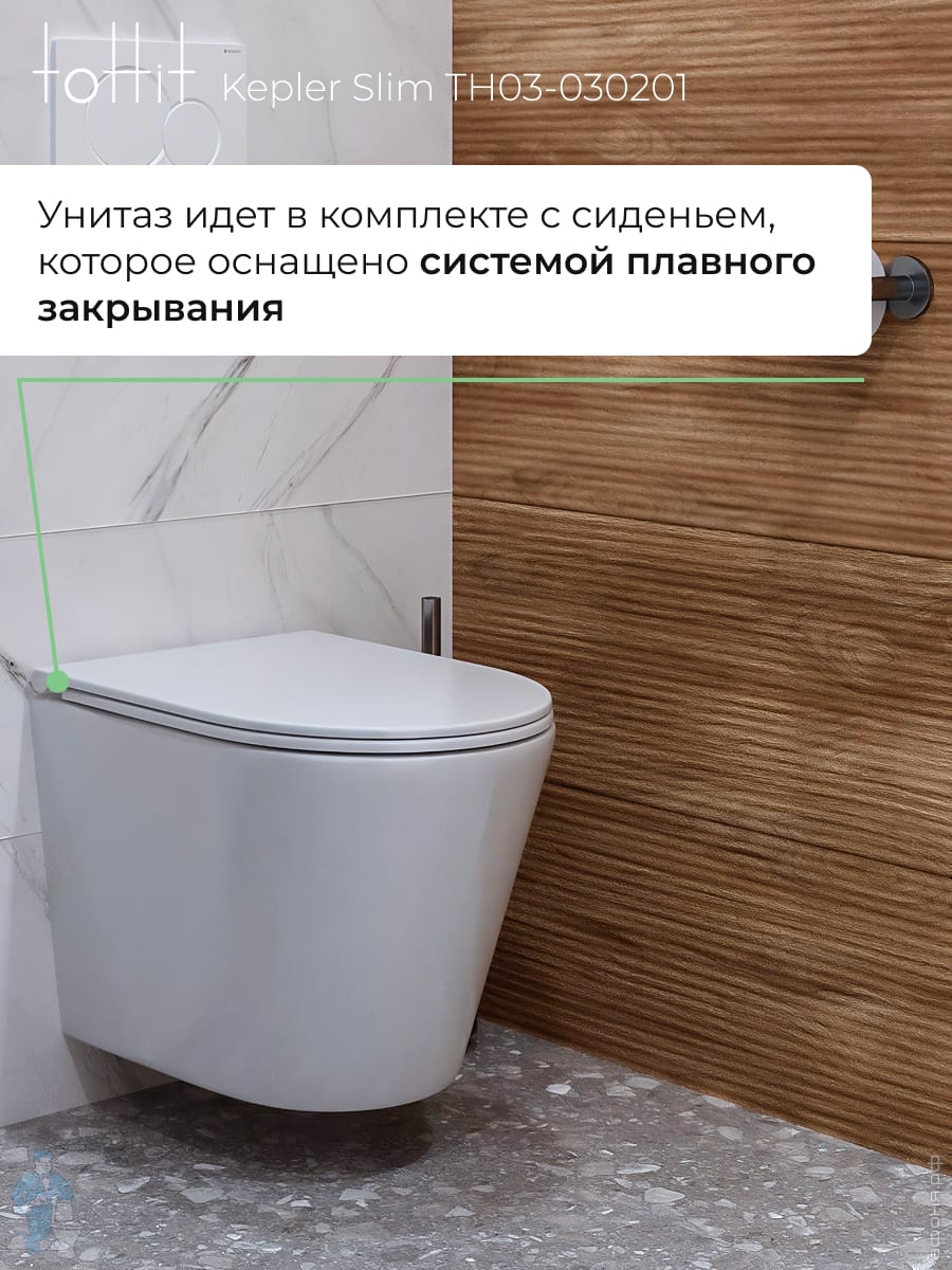 Унитаз подвесной toHit, бесшумный, безободковый, сиденье с микролифтом, белый, 525х345х360, TP092303Код: 213447