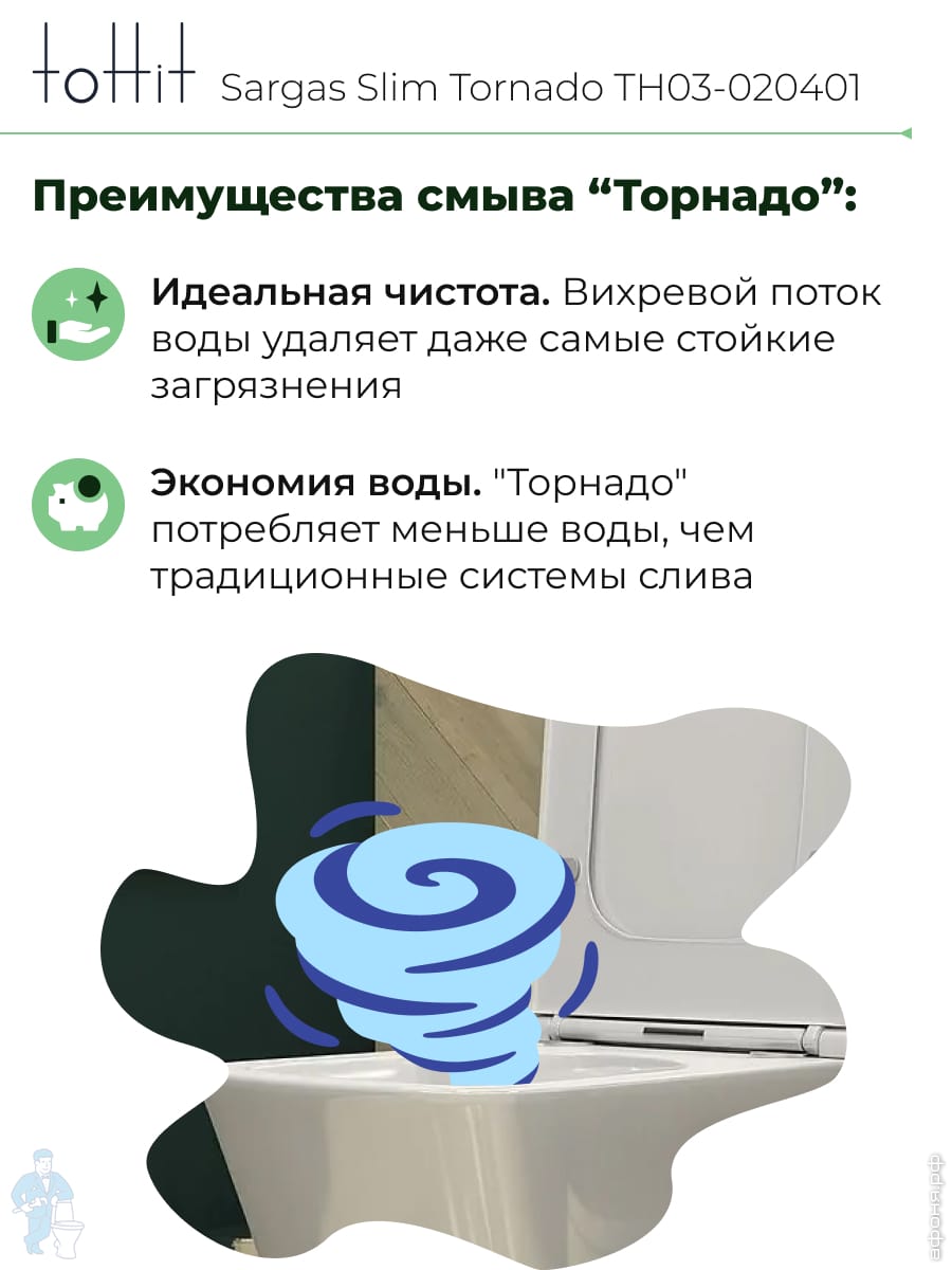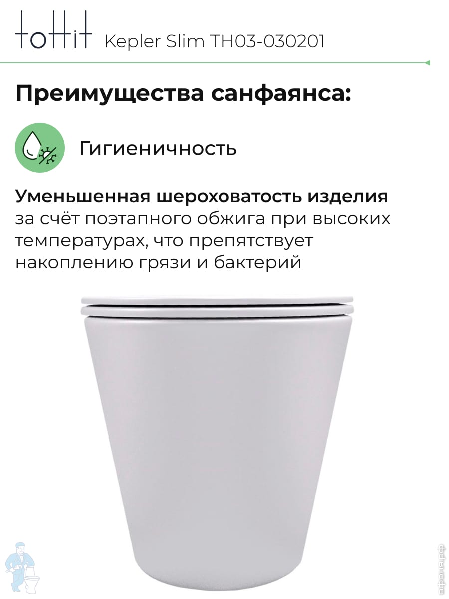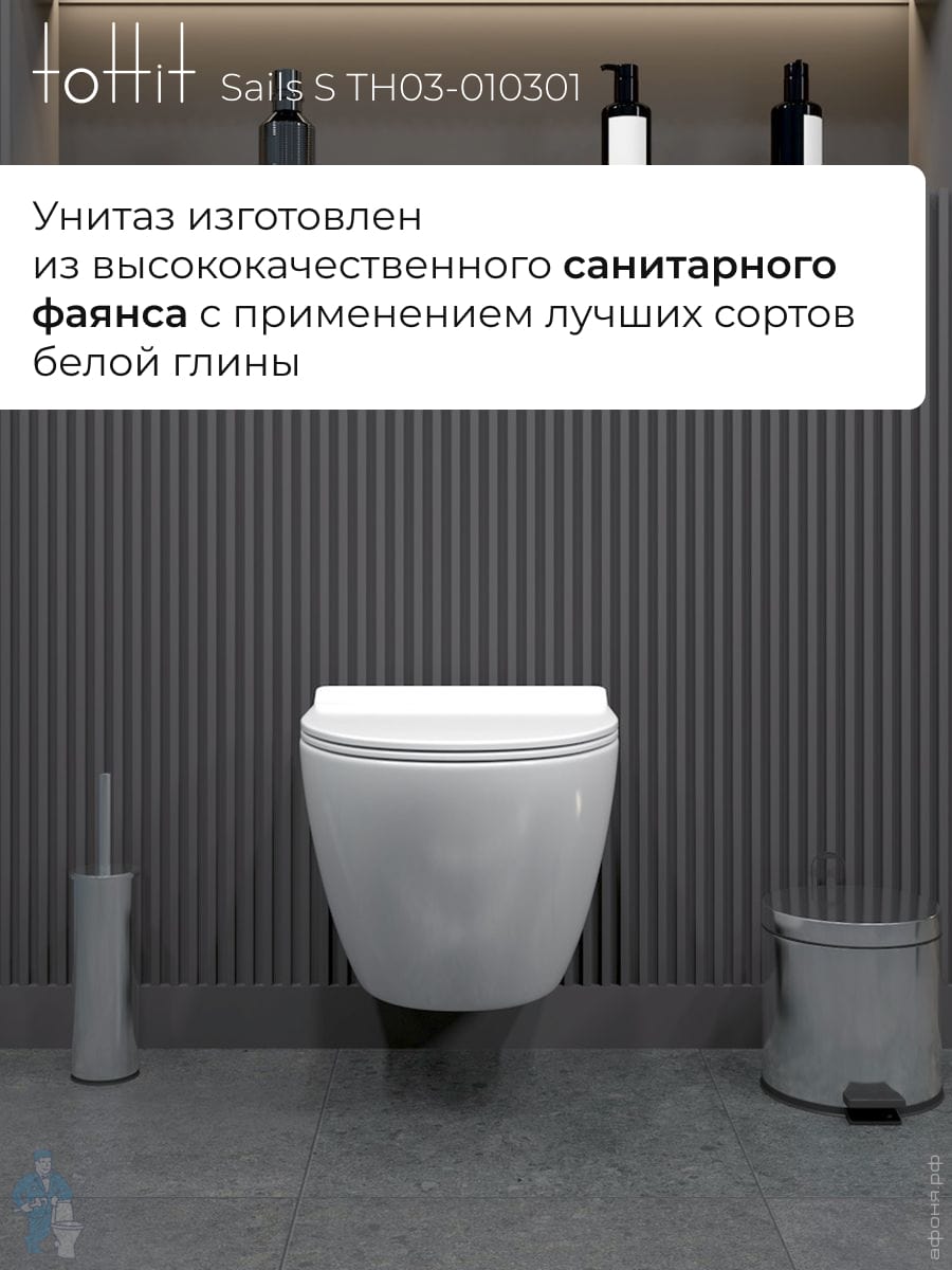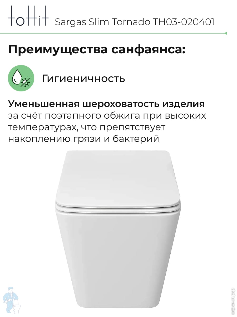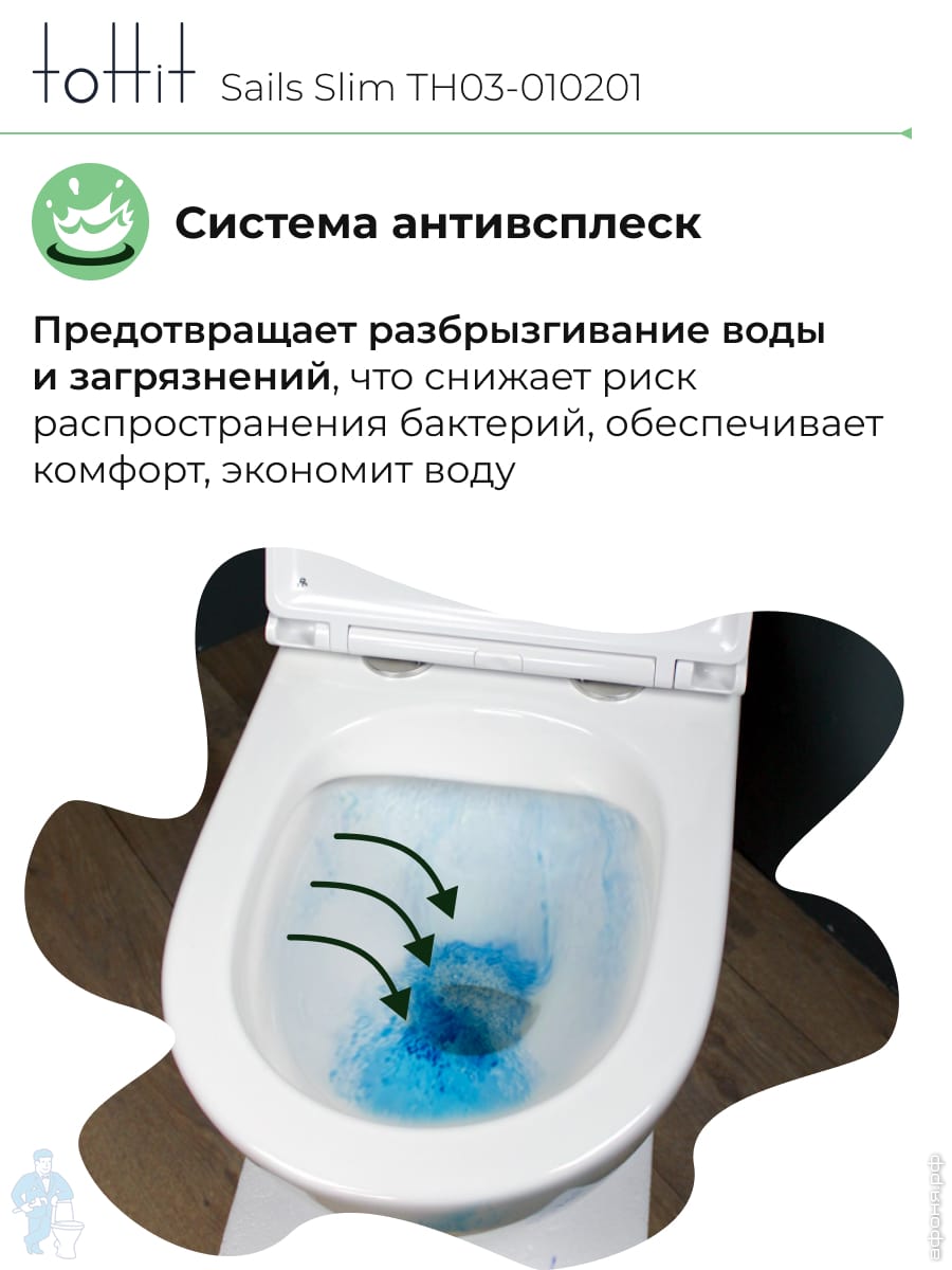 Унитаз подвесной toHit, бесшумный, безободковый, сиденье с микролифтом, белый, 525х345х360, TP092303Код: 213447