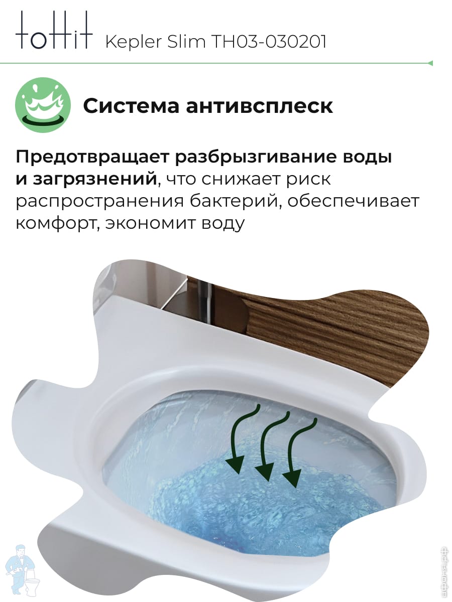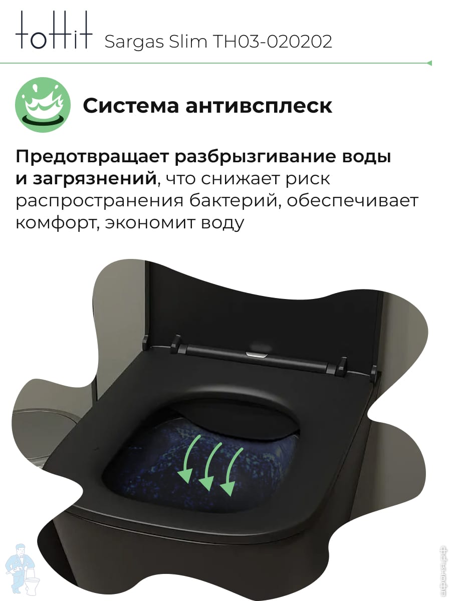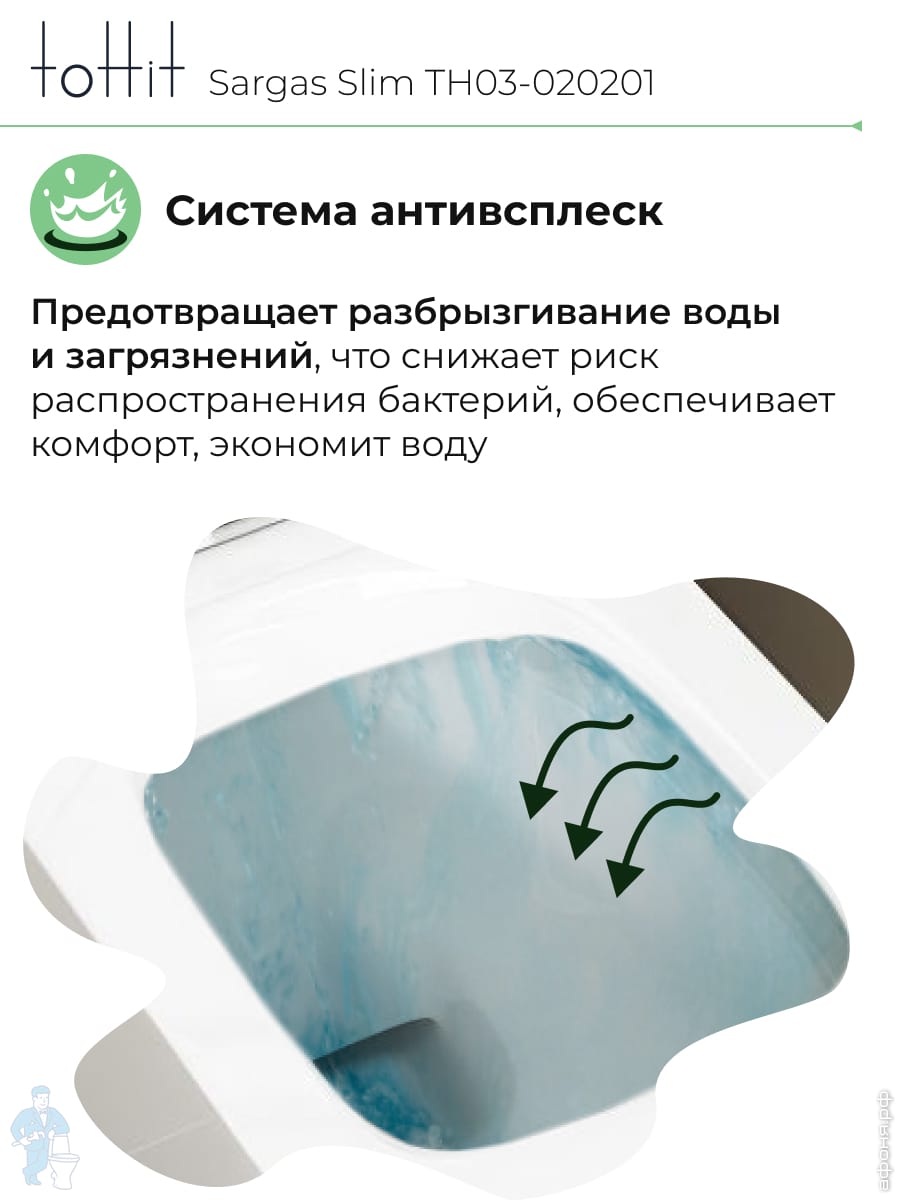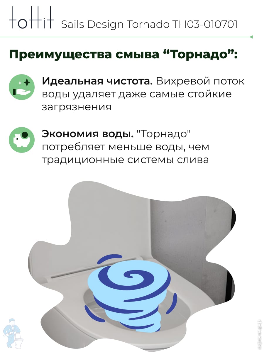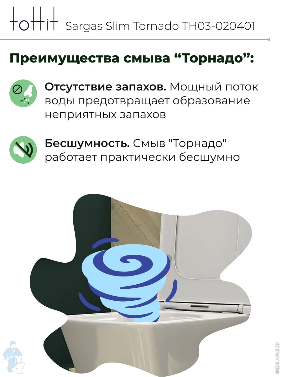 Унитаз подвесной toHit, бесшумный, безободковый, сиденье с микролифтом, белый, 525х345х360, TP092303Код: 213447