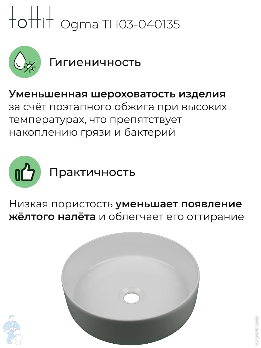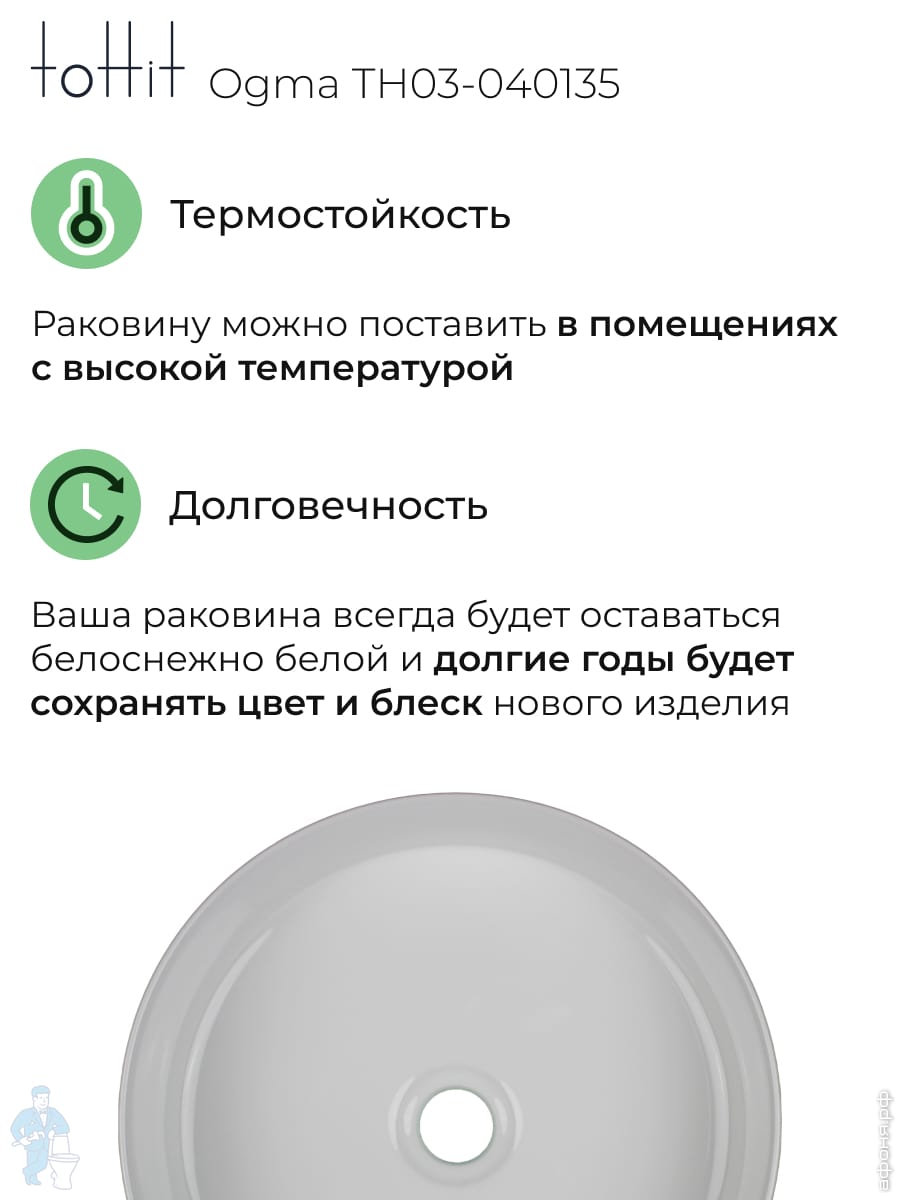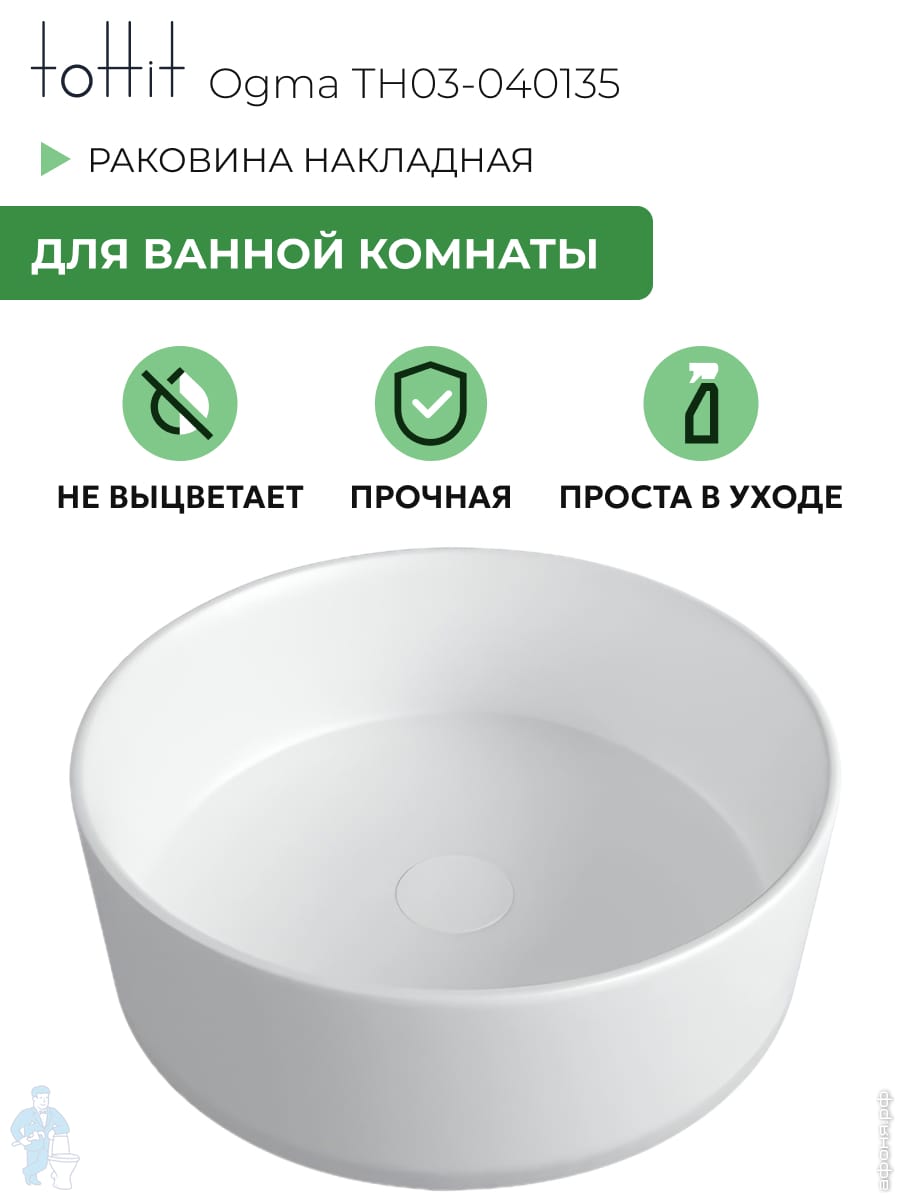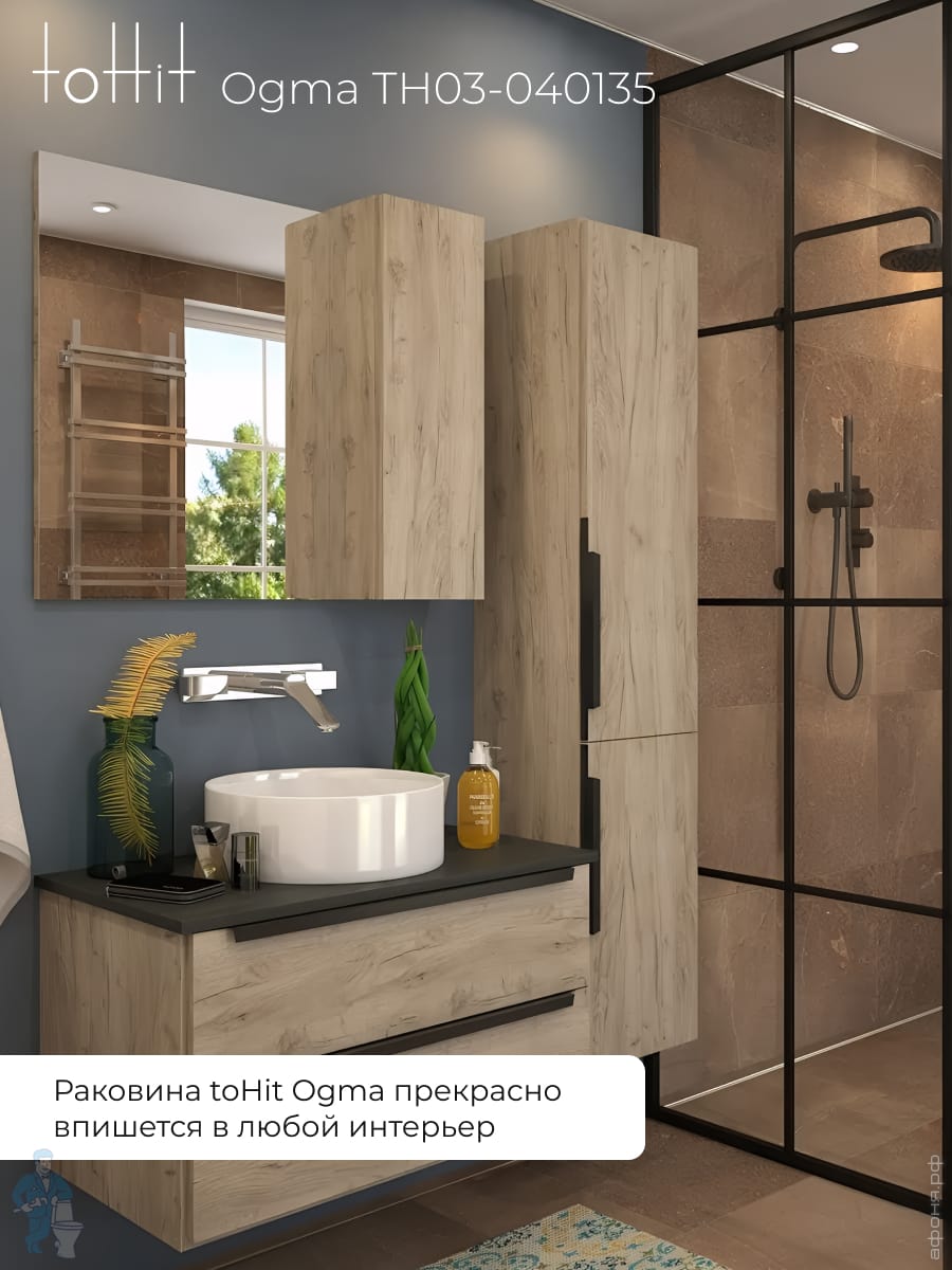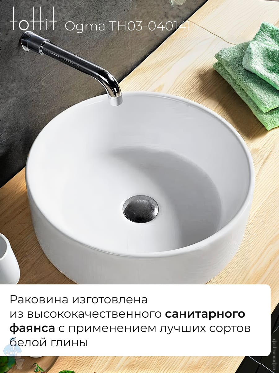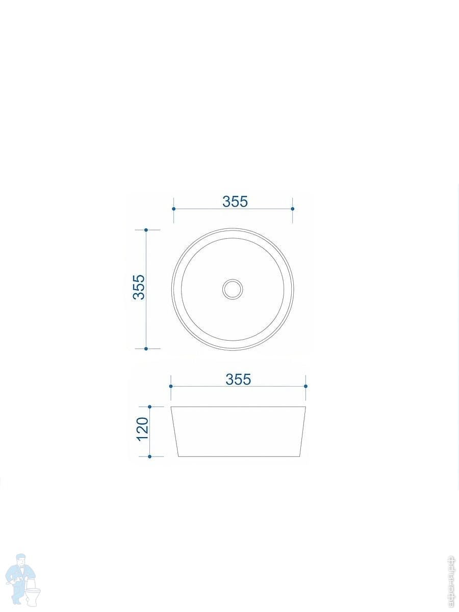 Раковина накладная toHit Ogma D35 355х355х120 без отверстия под смеситель,круглая, белый TH03-040135Код: 328980