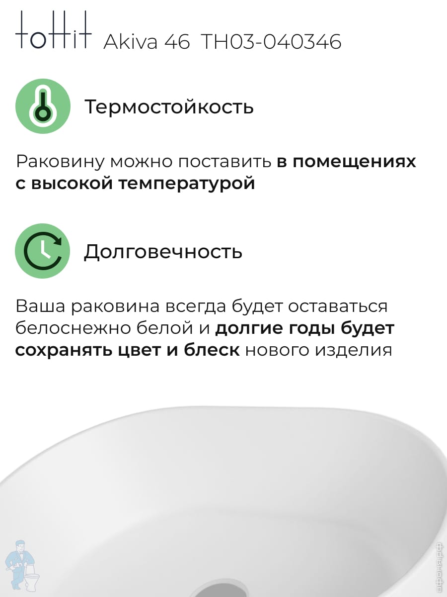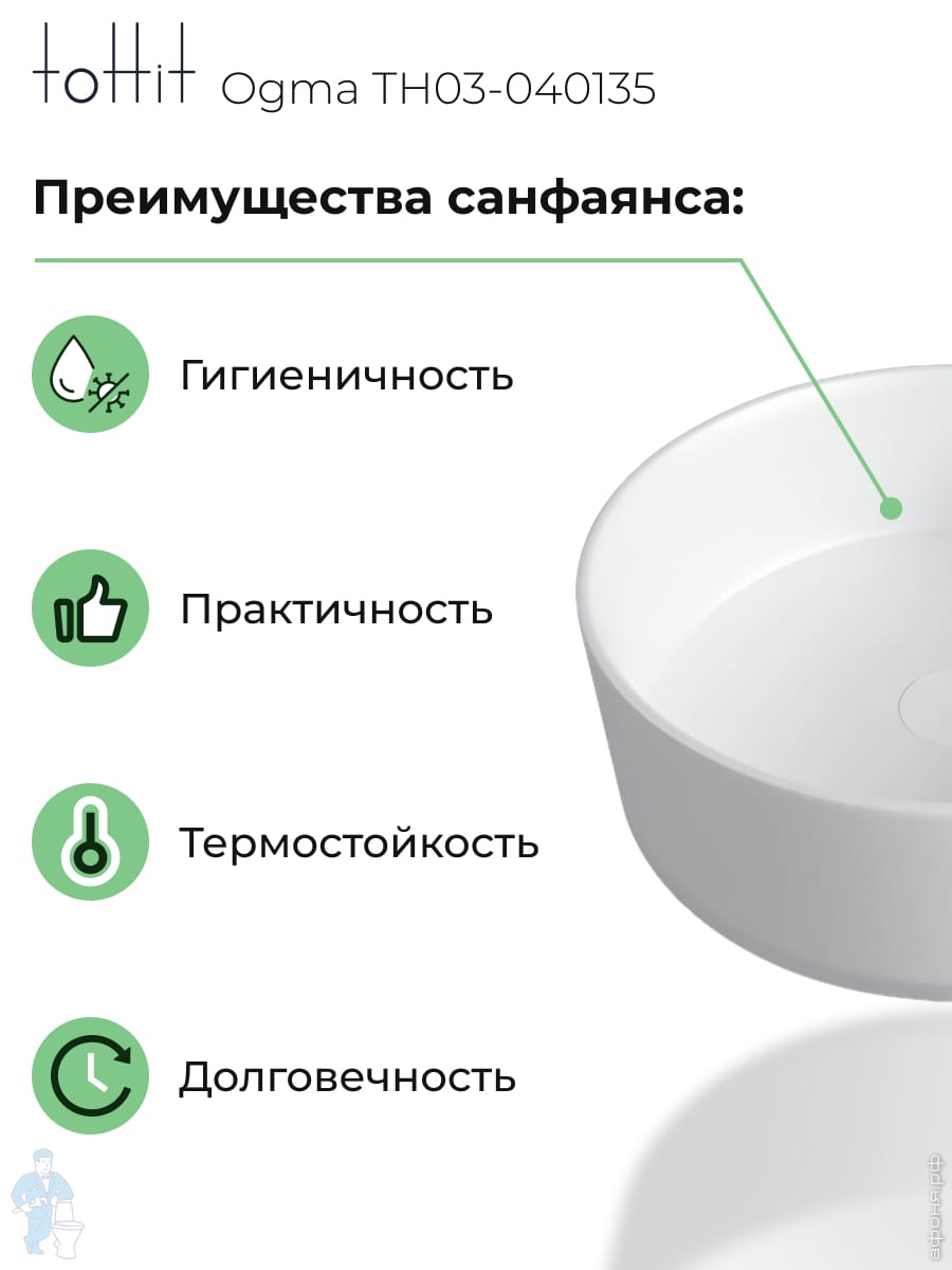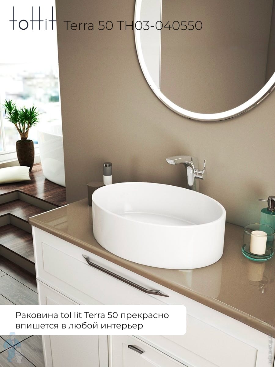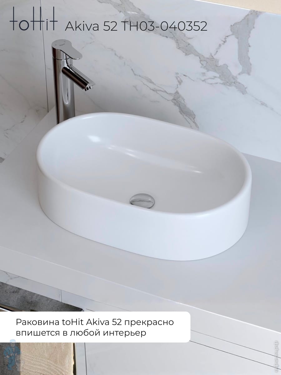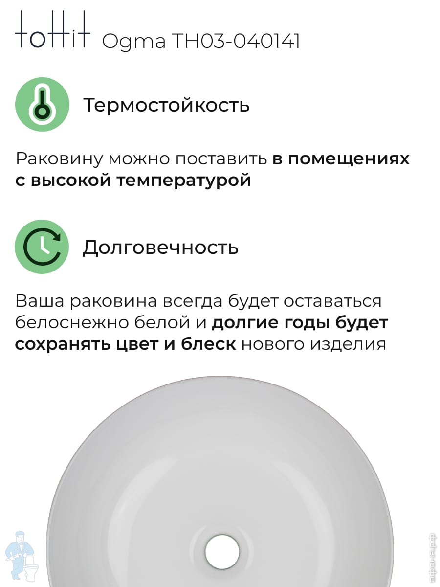 Раковина накладная toHit Ogma D35 355х355х120 без отверстия под смеситель,круглая, белый TH03-040135Код: 328980