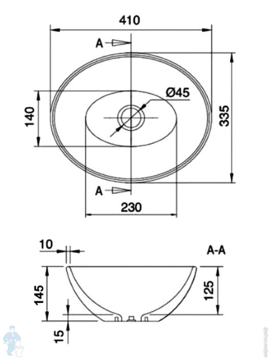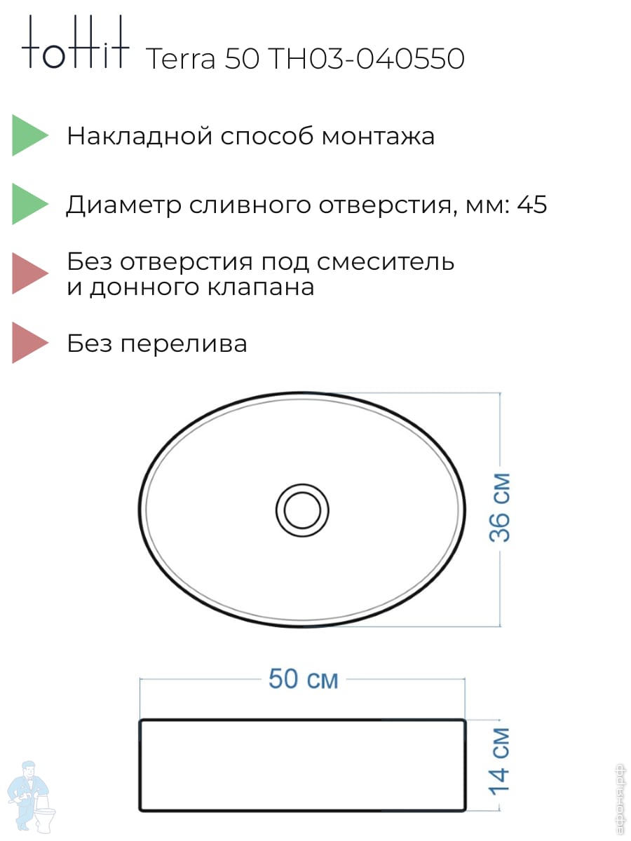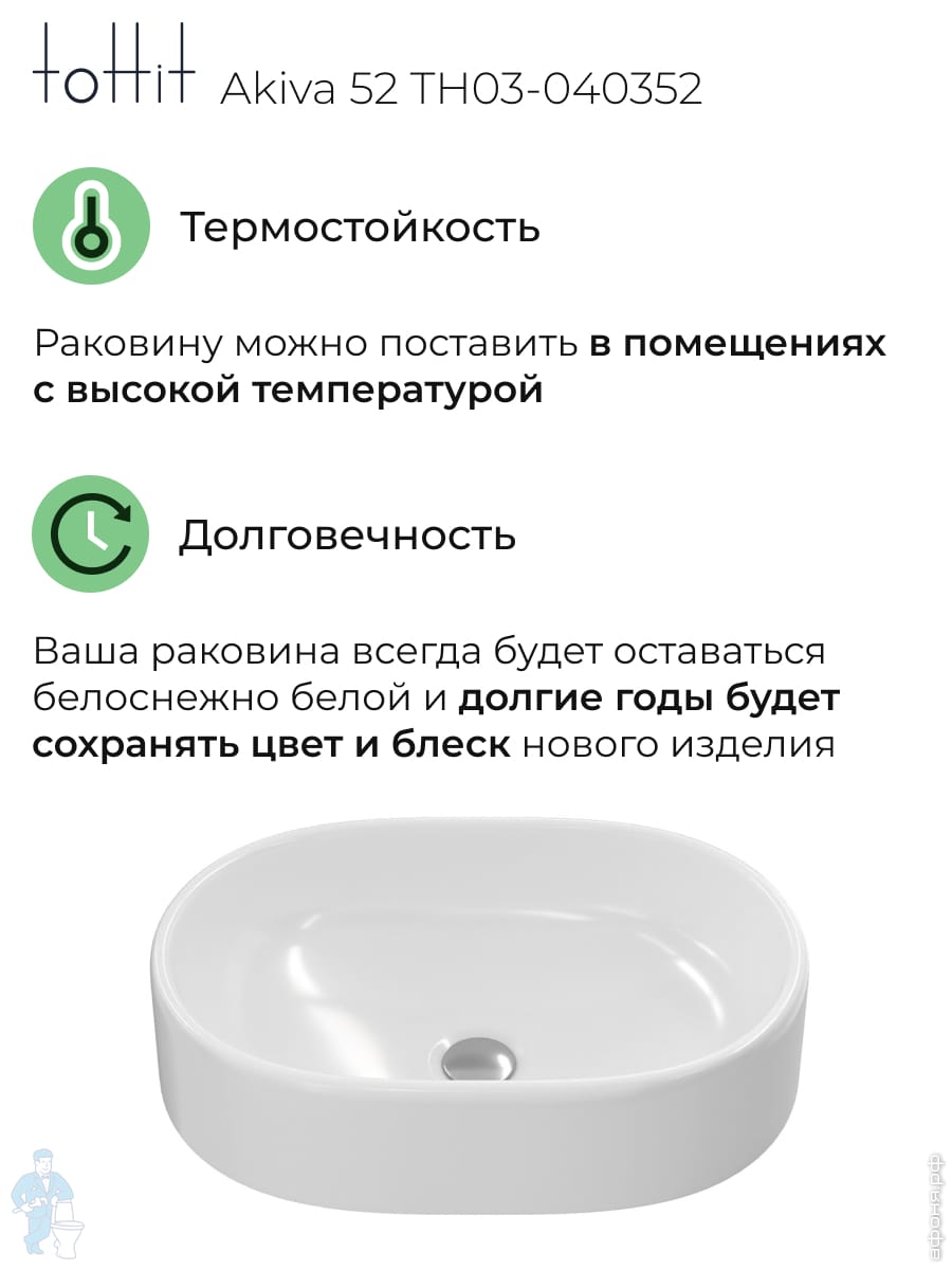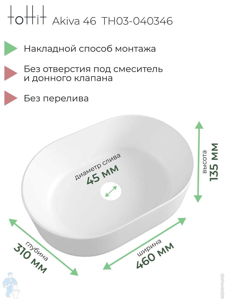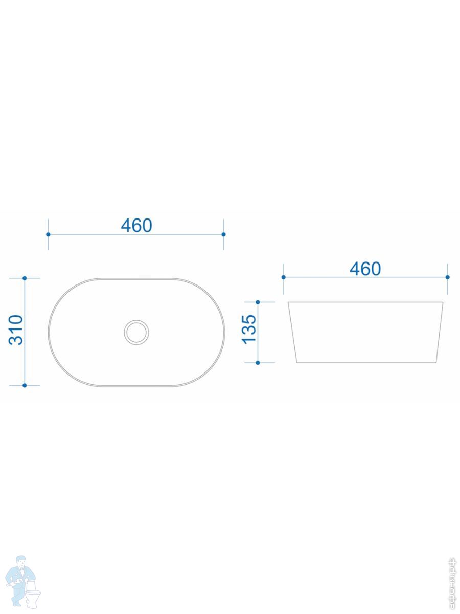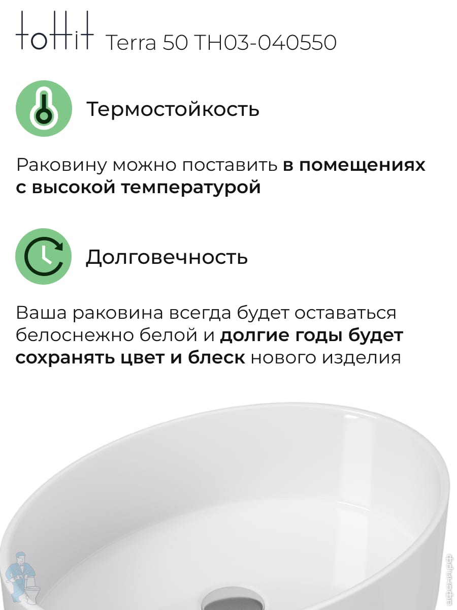 Раковина накладная toHit Ogma D35 355х355х120 без отверстия под смеситель,круглая, белый TH03-040135Код: 328980