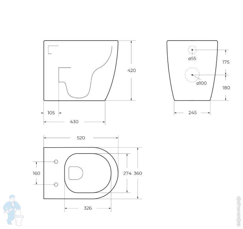 Унитаз приставной Globo Lalita LT001BI 540х360х430 безободковый, универсальный выпуск, крепеж, белыйКод: 196118