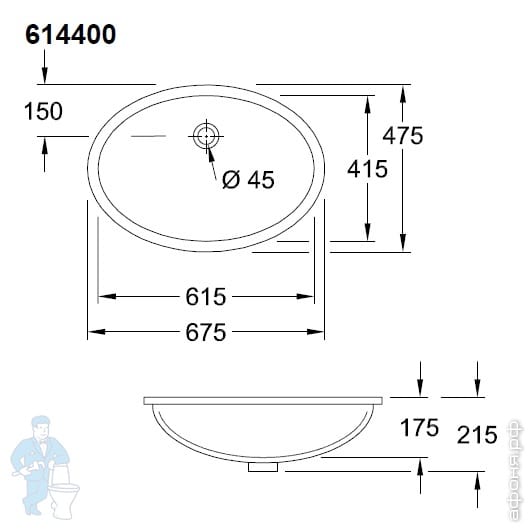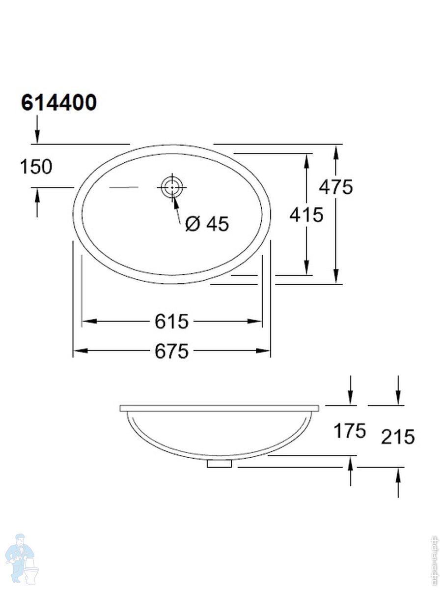 Раковина Villeroy & Boch Evana 61440001 (615х415х200)встраиваемая снизу,альпийский белый CeramicPlusКод: 354233