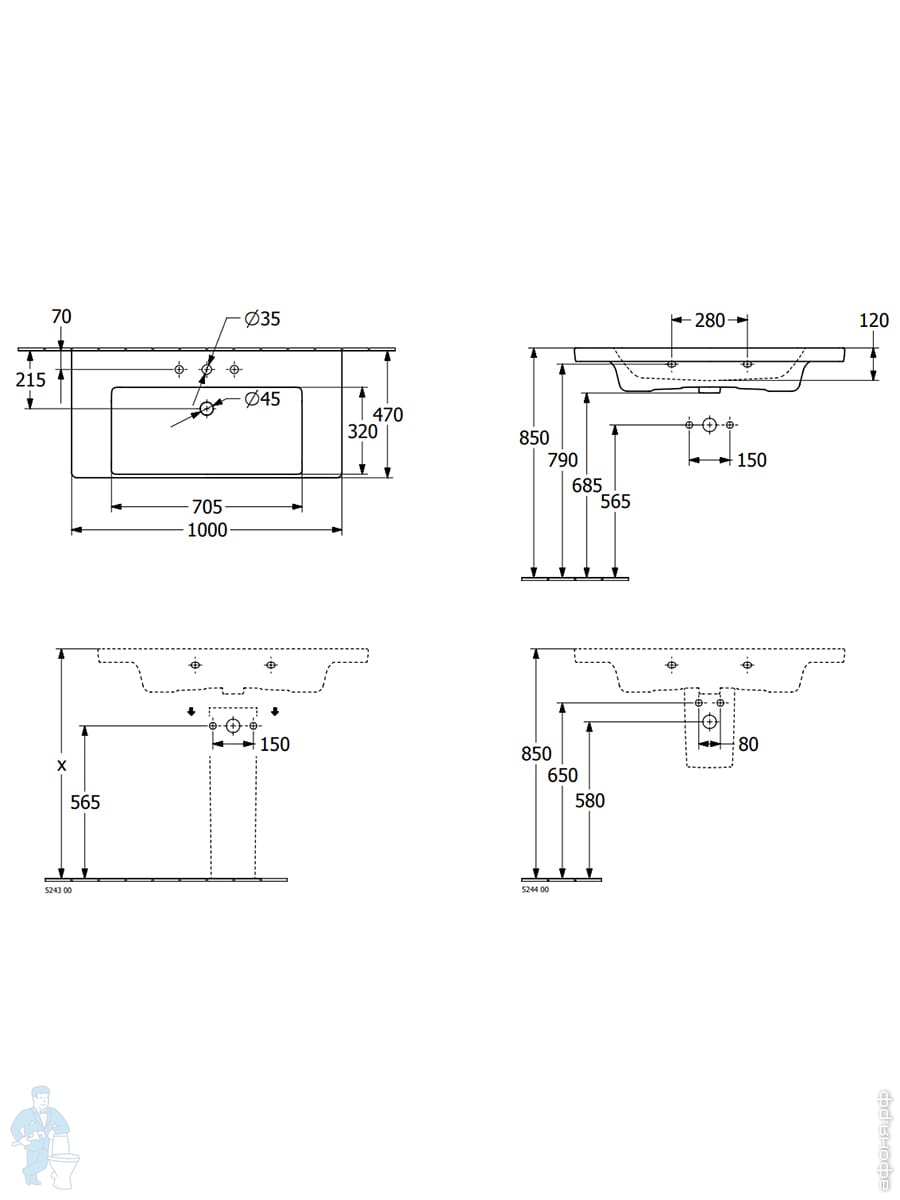Раковина накладная Villeroy&Boch Subway 3.0 800х470х165, перелив, отв. под смеситель, белый 4A708001Код: 272386