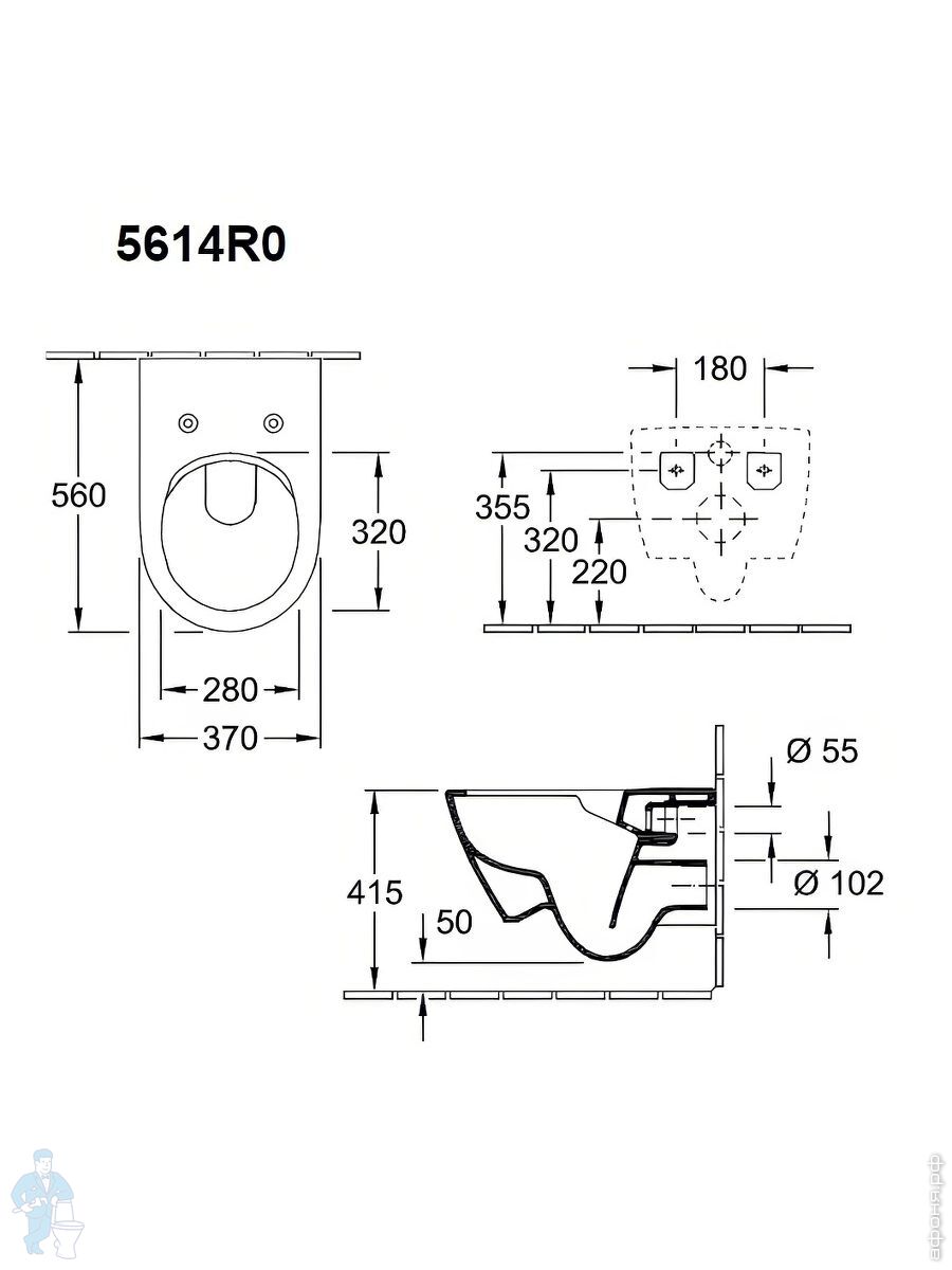 Унитаз подвесной Villeroy & Boch Subway 2.0 5614 A1 R1 (370х560х365) без ободка, ViFresh,CeramicPlusКод: 126873