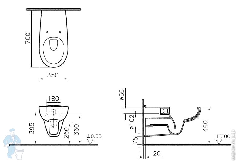Унитаз-компакт Vitra Serenada 355х700х785 с сиденьем,антибакт. покр.,универсал. выпуск 9722B003-7203Код: 55894