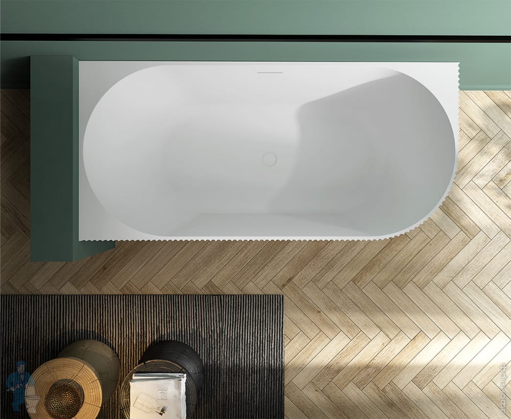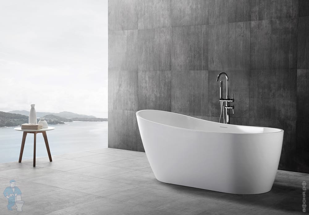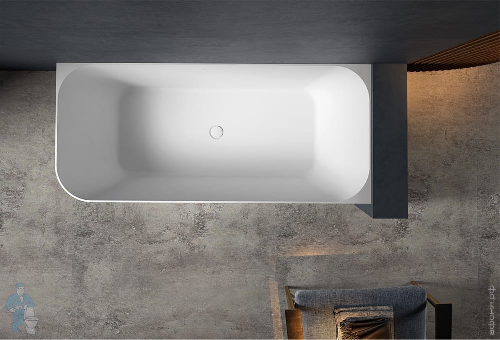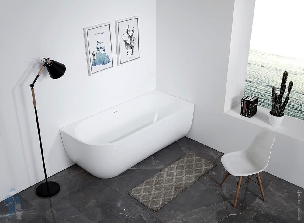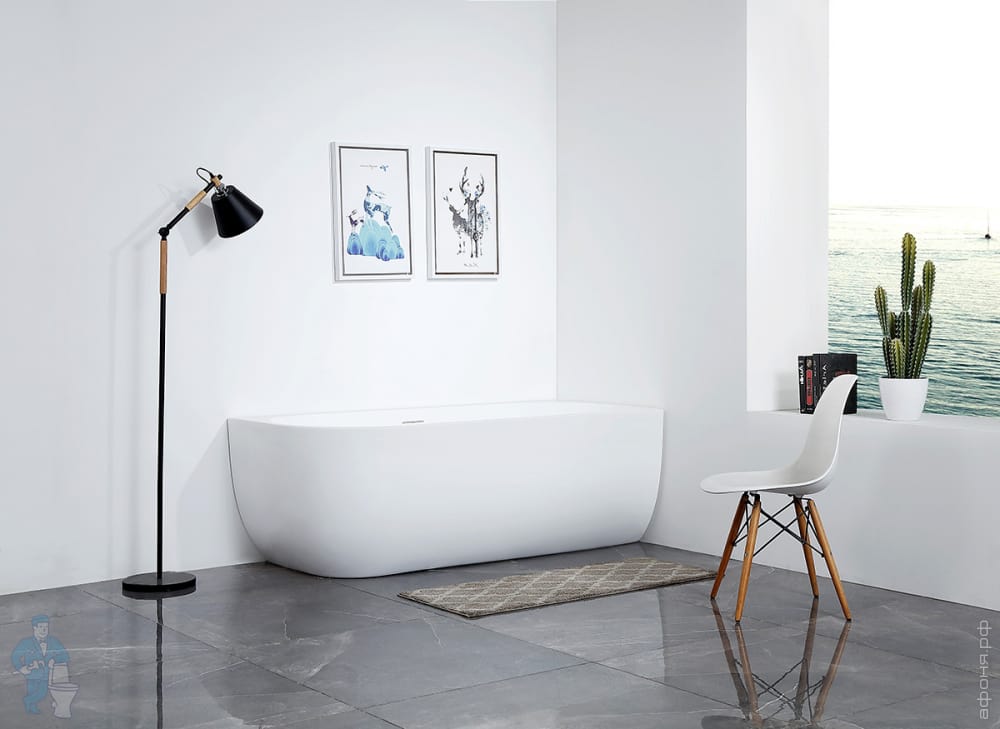 Ванна из искусственного камня Abber Stein (1800x850) отдельностоящая, слив-пер, белая мат AS9625-1.8Код: 324792