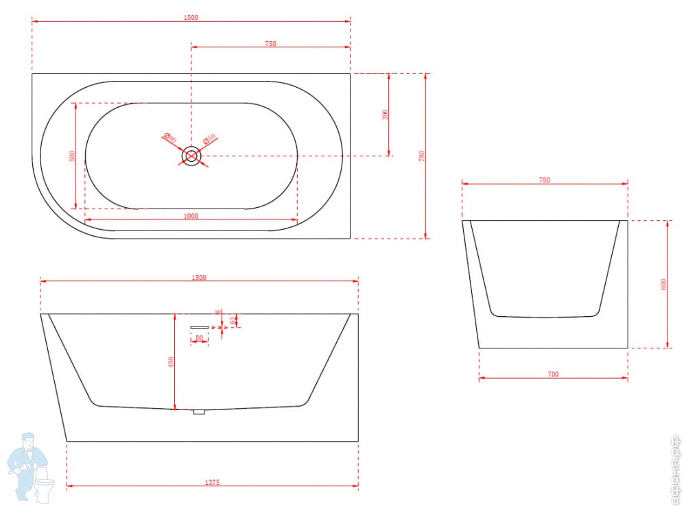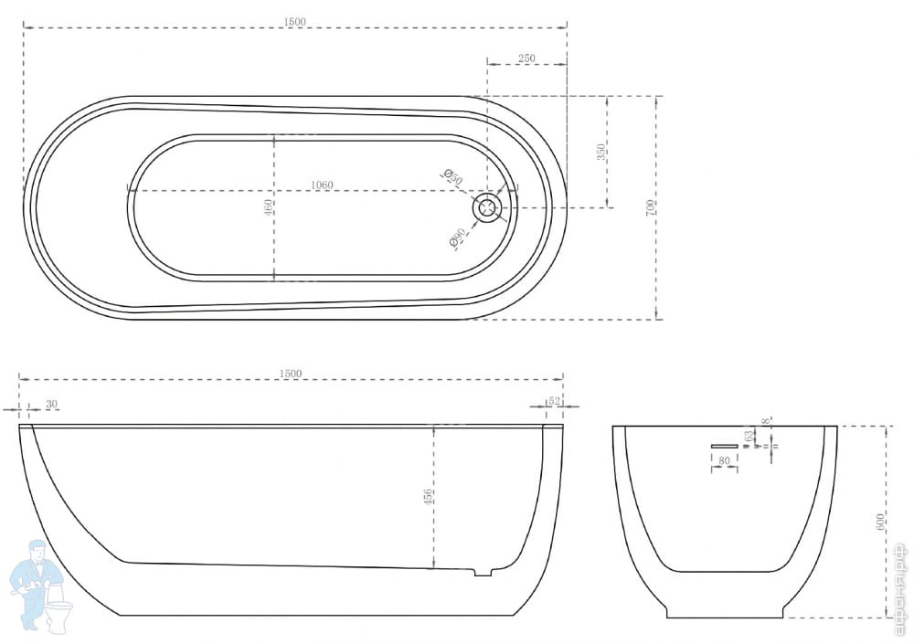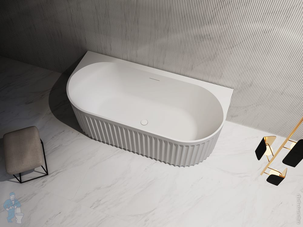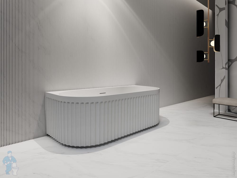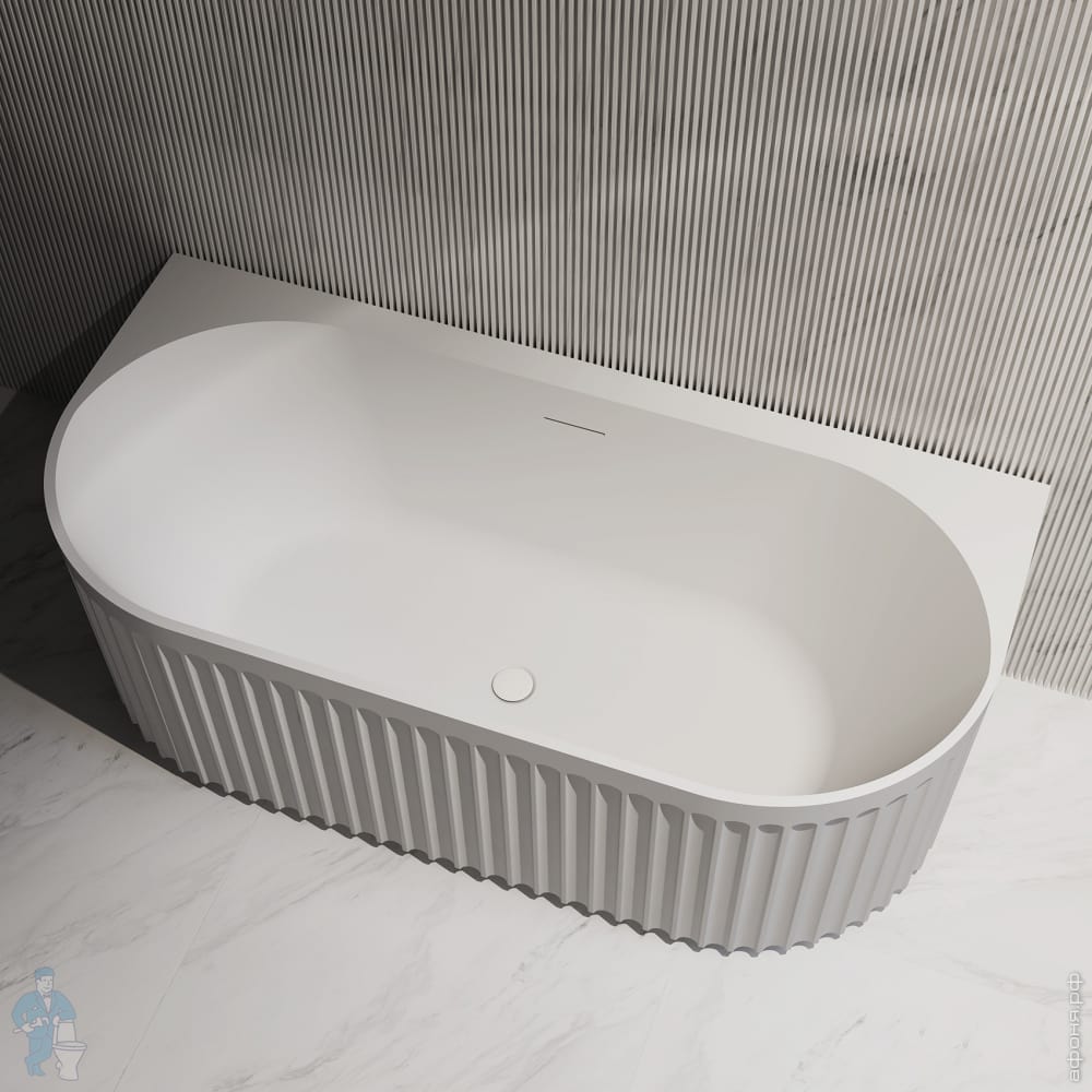 Ванна из искусственного камня Abber Stein (1500x700) отдельностоящая, слив-пер, белая мат AS9640-1.5Код: 324768
