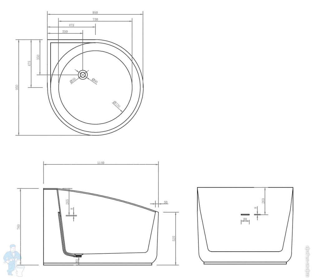 Ванна из искусственного камня Abber Stein (1800x1300) отдельностоящая, слив-перелив,белая мат AS9608Код: 324776