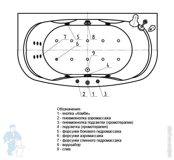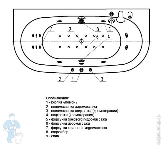 Комплектация овальной ванны