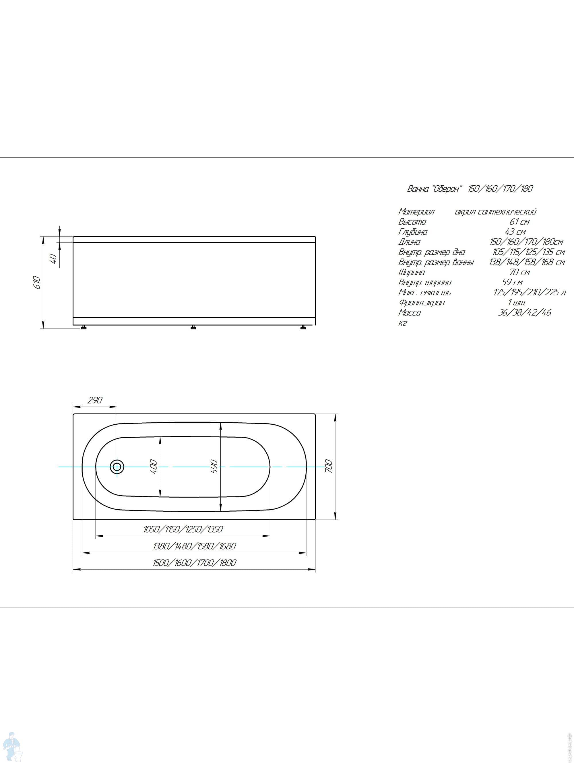 Ванна ОБЕРОН Акватек (150х70)