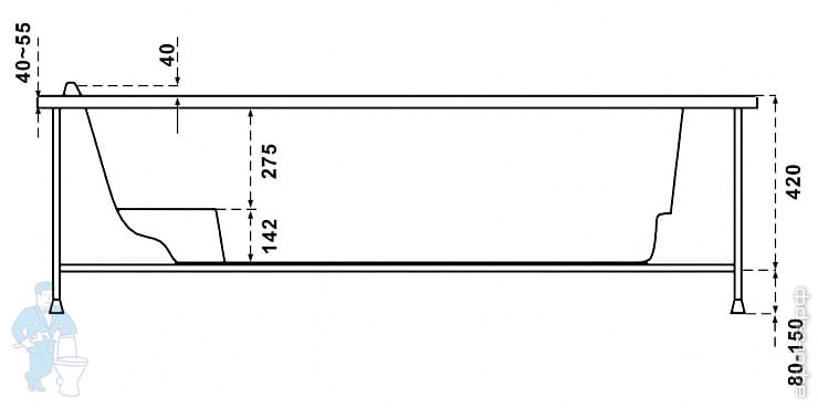 Ванна акриловая BAS Вектра 1500х900 угловая, правая, асимметричная,каркас, без слива-перелива, белыйКод: 10545