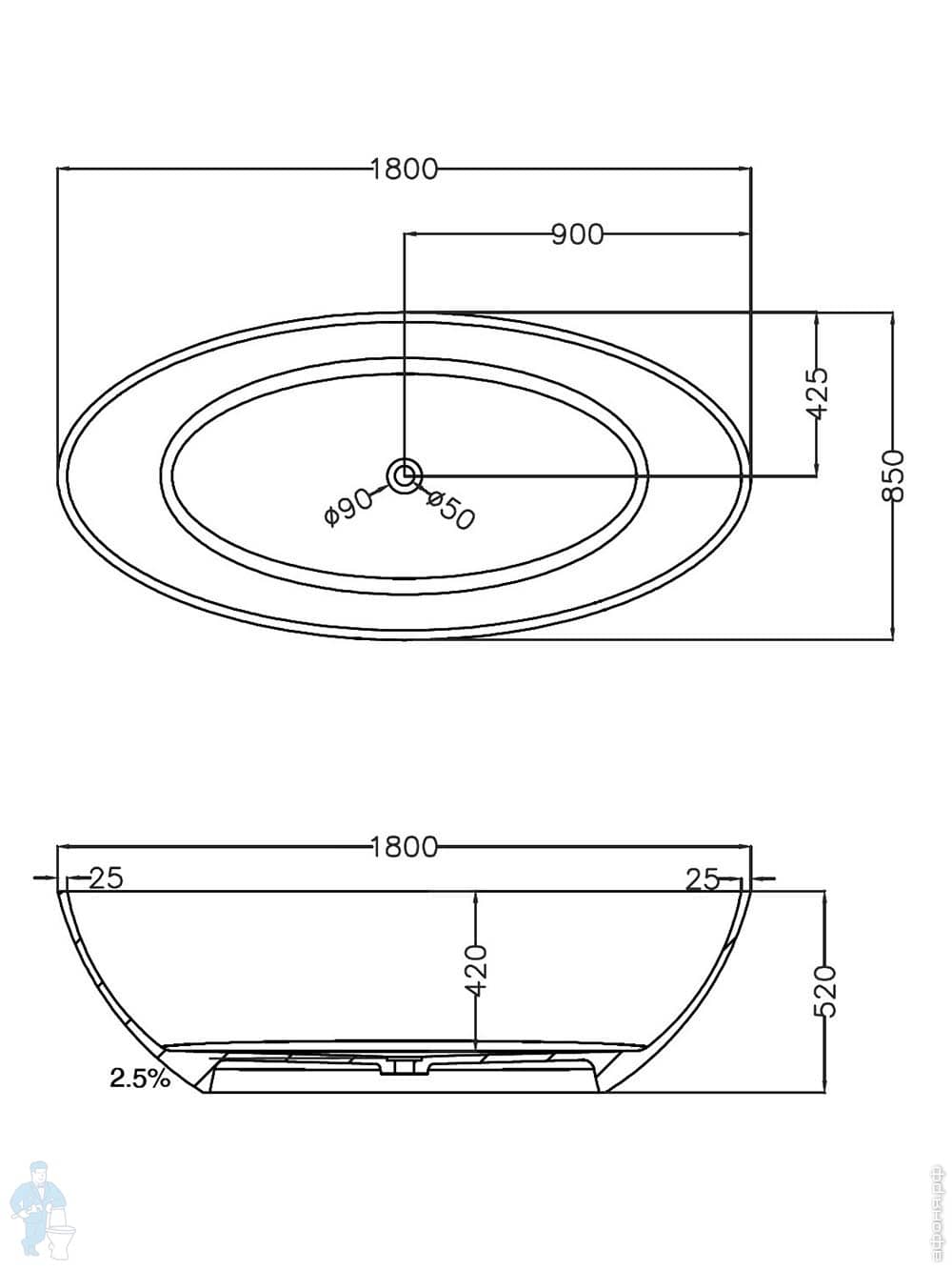 Прозрачная ванна Abber Kristall (1800х850) отдельностоящая, донный клапан, фиолетовая AT9702AmethystКод: 300567