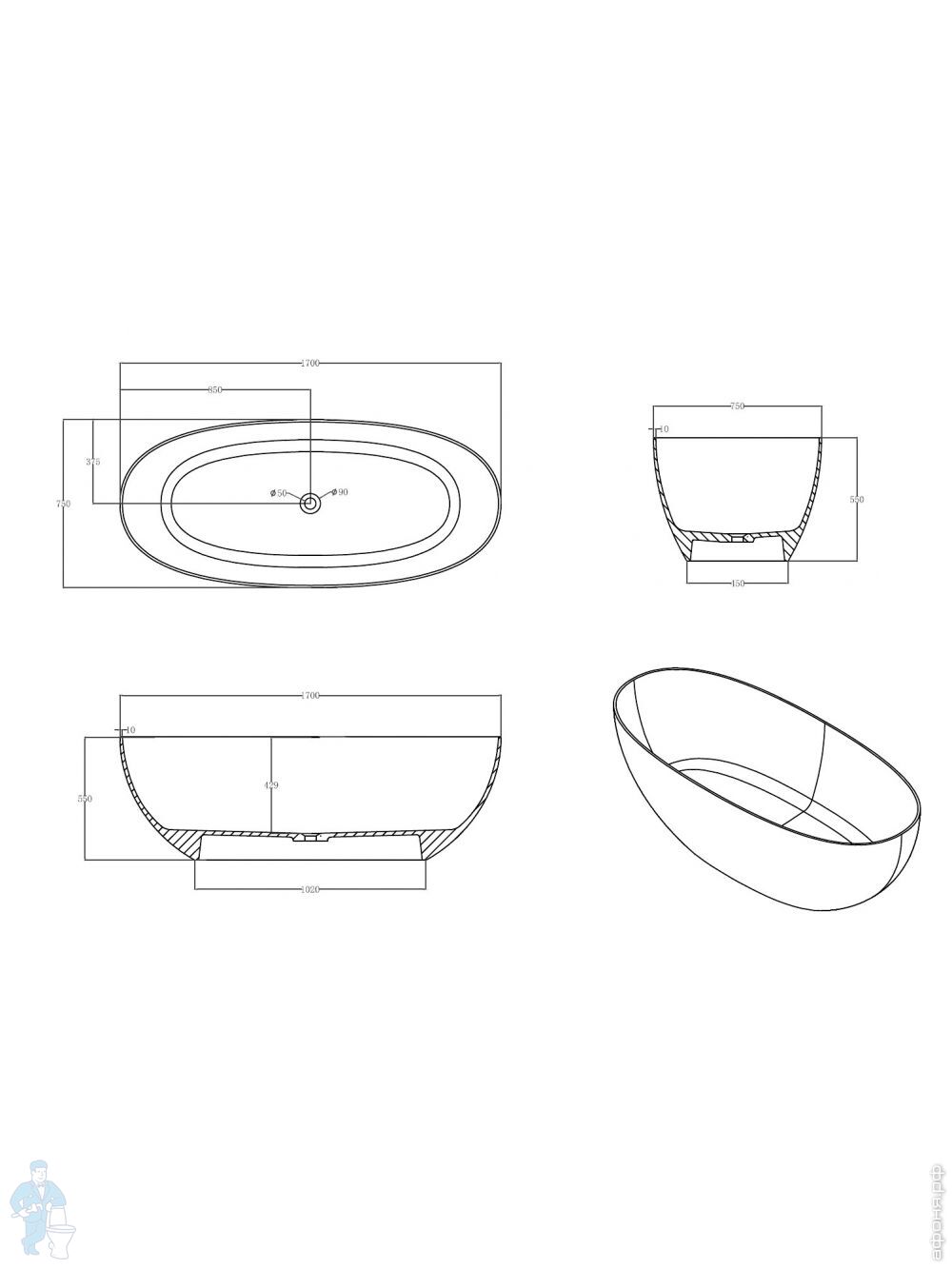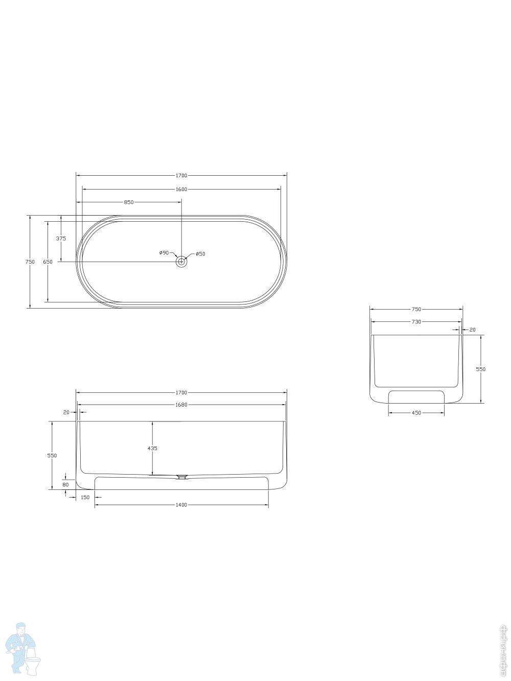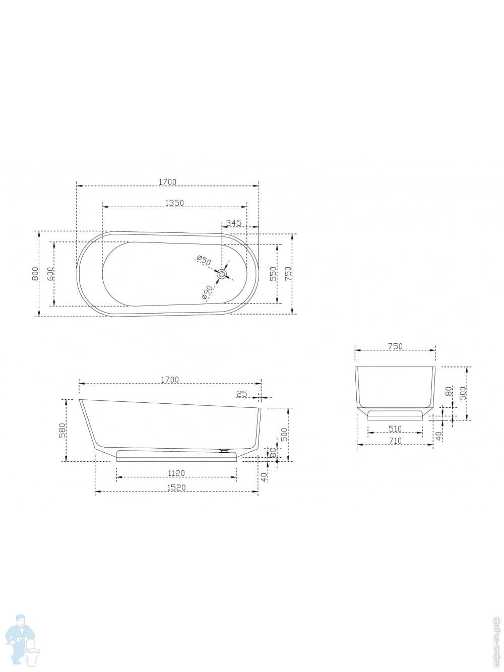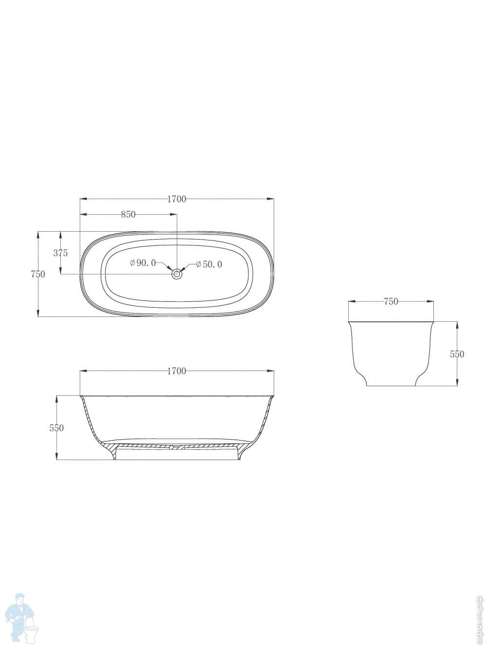 Прозрачная ванна Abber Kristall (1700х750) отдельностоящая, донный клапан, бирюзовая AT9703AquamarinКод: 300572