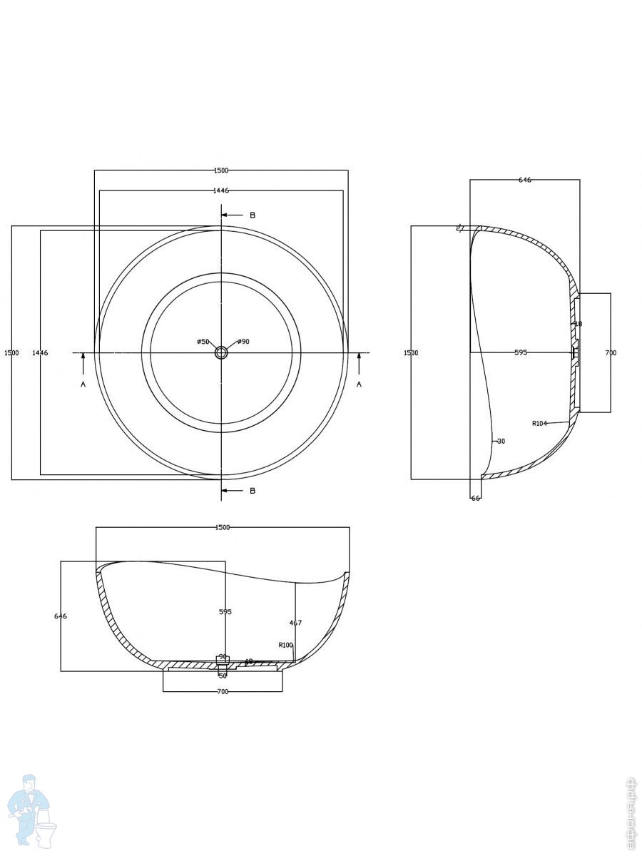 Прозрачная ванна Abber Kristall (1500х1500)отдельностоящая, донный клапан, бирюзовая AT9705AquamarinКод: 300578
