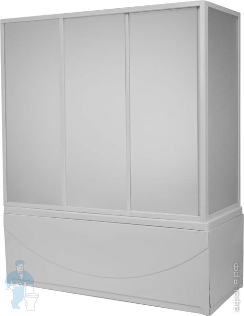 Шторы из стекла — это конструкции с одной или несколькими створками, которые состоят из стеклянных вставок и металлических рам. Нижний край рам крепится на бортике ванны, верхний — на одной или нескольких стойках.