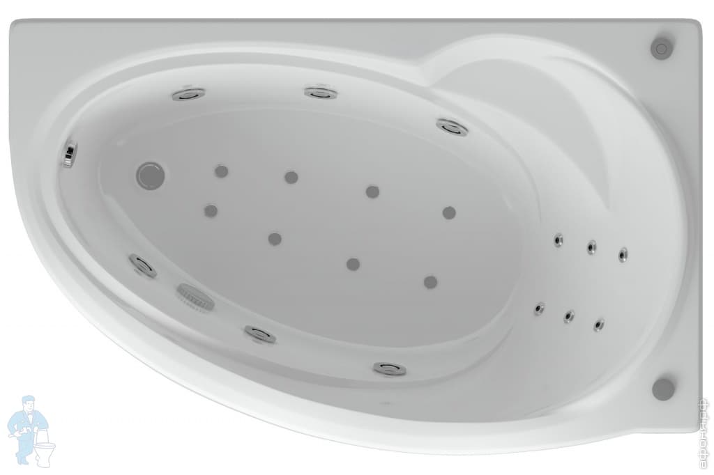 Ванна акриловая Акватек БЕТТА 150х95 правая,гидромассаж плоская гамма хром,ПН.упр,фрон.панель,каркасКод: 81013