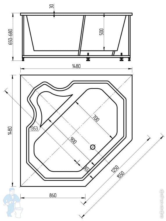 Ванны Ванна ЛИРА Акватек (148х148)