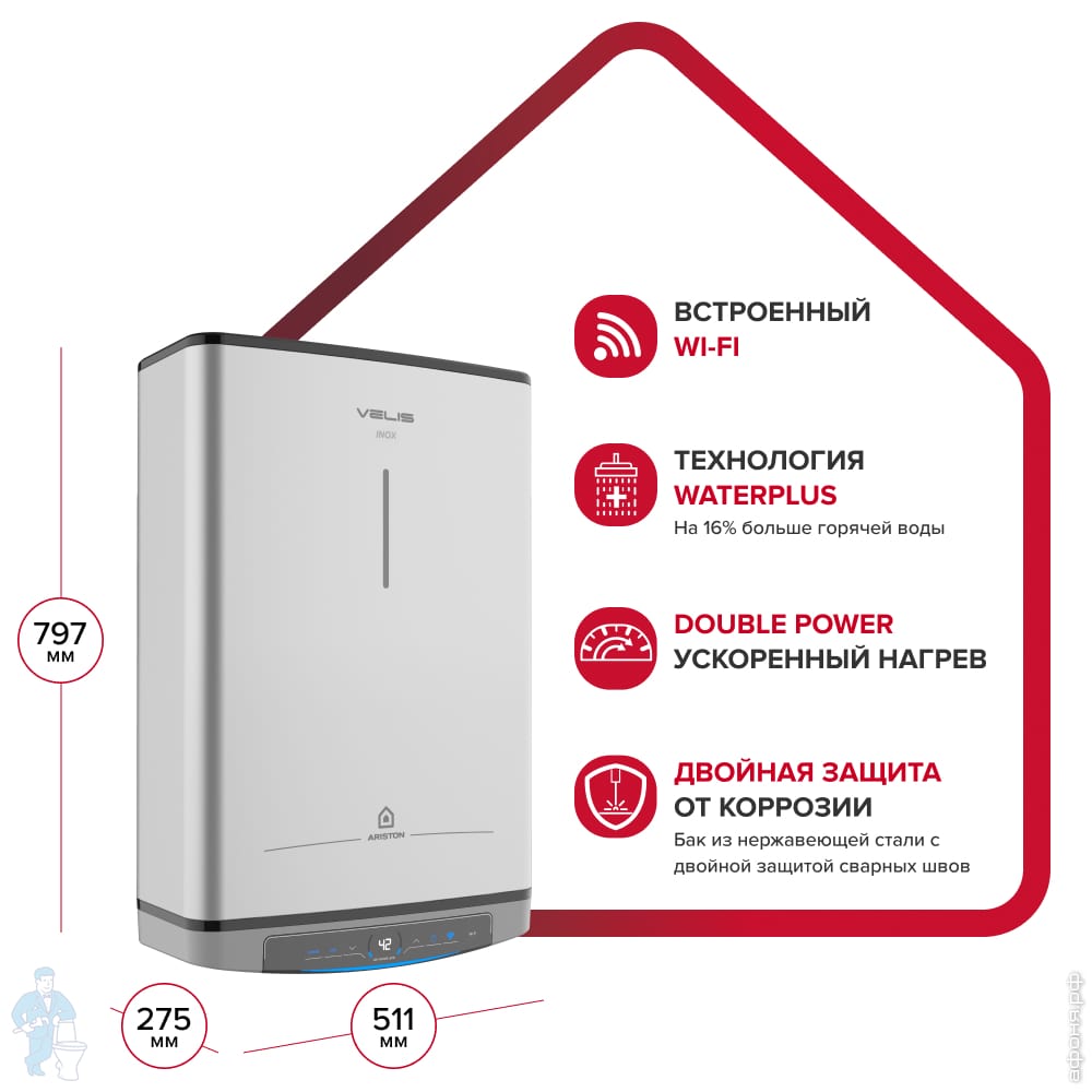 На сайте сети магазинов сантехники «Афоня» представлены накопительные электрические водонагреватели Ariston самых разных типов, есть: