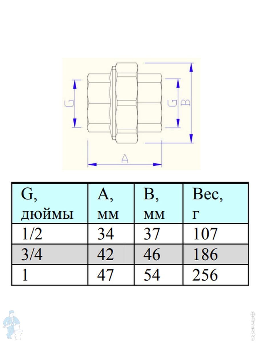 Диаметр: 3/4"Нх3/4"Н