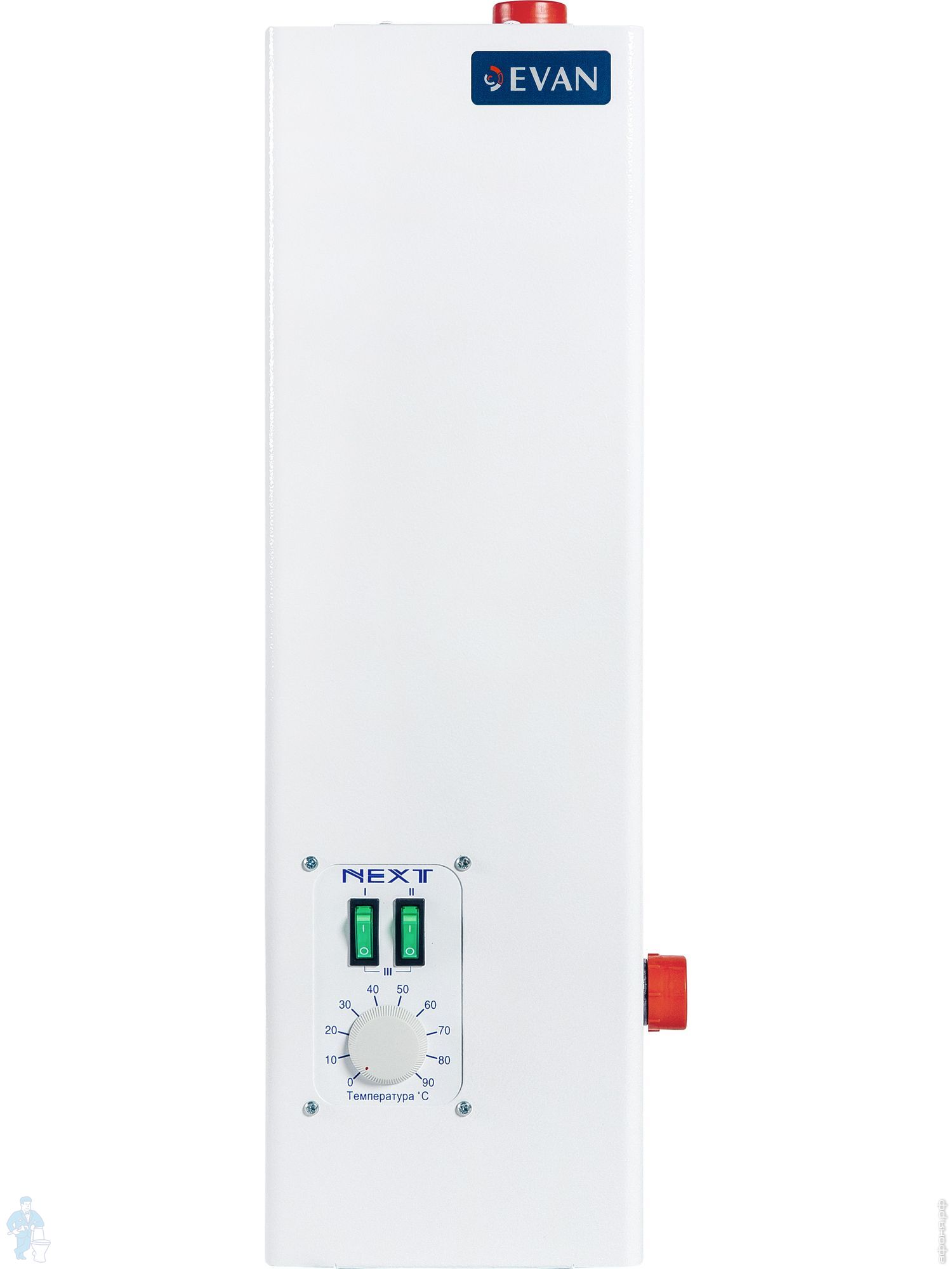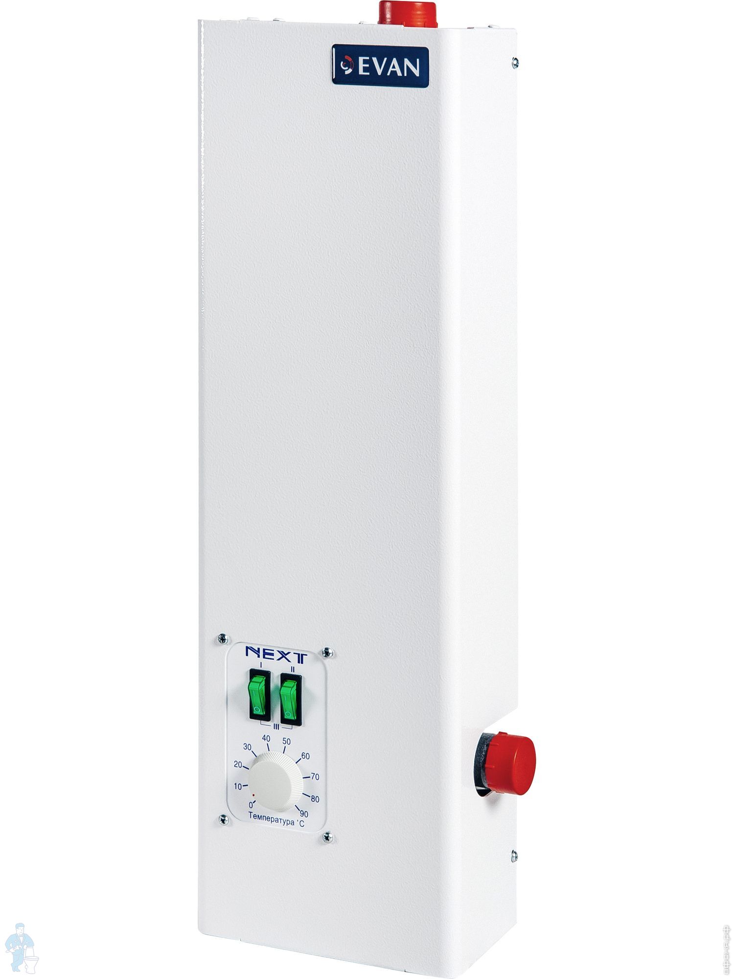 Высокий спрос на тепловое оборудование компании Эван объясняется его экономичностью, надежностью и простотой обслуживания. Модельный ряд электрокотлов ЭВАН ЭПО (класс эконом) подходит для отопления помещений площадью 25 - 150 кв.м. Электрокотлы Эван С1 (класс стандарт) с легкостью отопят большой жилой дом или небольшое производственное помещение площадью до 300 кв.м. Модельный ряд ЭВАН Warmos - 5 марок котлов высокого класса для обогрева площадей от 360 до 600 кв.м. Все электрические котлы Эван оборудованы тэнами из нержавеющей стали, для крепления тэнов использовано резьбовое соединение, дающее удобство замены при необходимости. Температура теплоносителя плавно регулируется с помощью встроенного термостата. Каждый котел имеет возможность установки оборудования для принудительной циркуляции. Автоматика отключит прибор при достижении заданной температуры и аварийно - при перегреве или отсутствии воды.