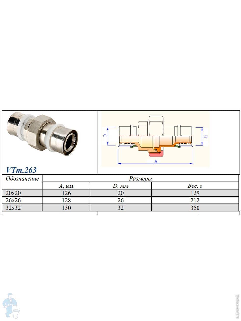 Пресс соединители с накид.гайкой, муфты разъемные Valtec