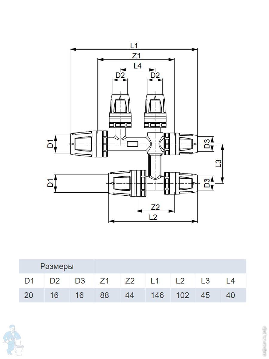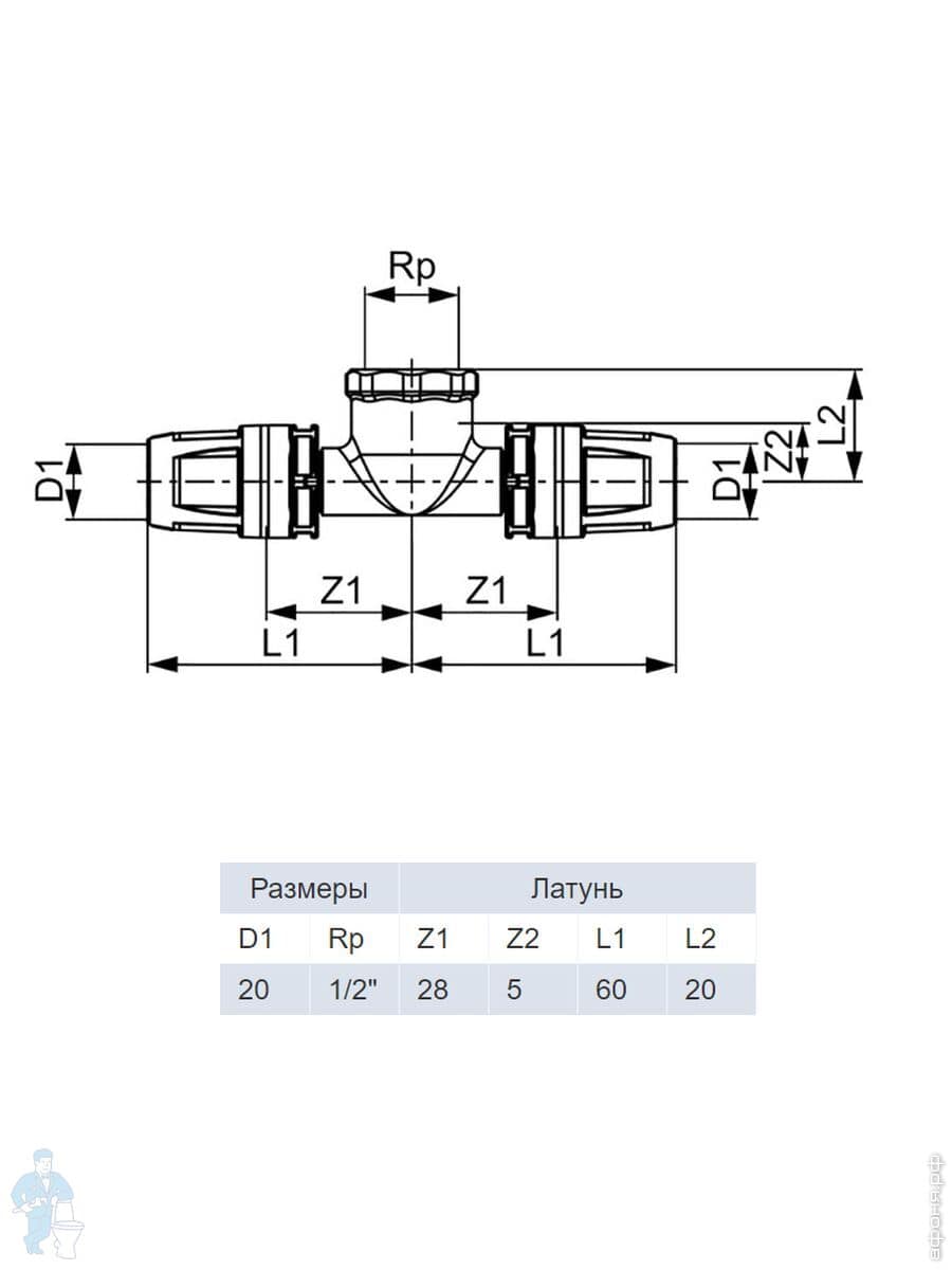 Тройник TECElogo 16 х 15 х 16, двойной, д/подкл.радиаторов, с медными патрубками, ник.латунь 8740421Код: 111295