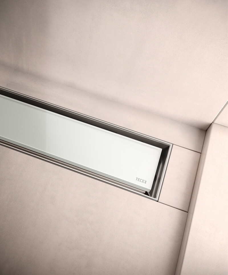 - Декоративные панели: Ассортимент душевых решеток TECEdrainline представлен стеклянными панелями, выполненными из безопасного стекла и решетками из нержавеющей стали. Для тех, кто хочет придать душевой панели уникальный внешний вид есть TECEdrainline «plate» — благодаря основе для укладки керамической плитки, душевая решетка становится «хамелеоном» и сливается с окружающим интерьером.